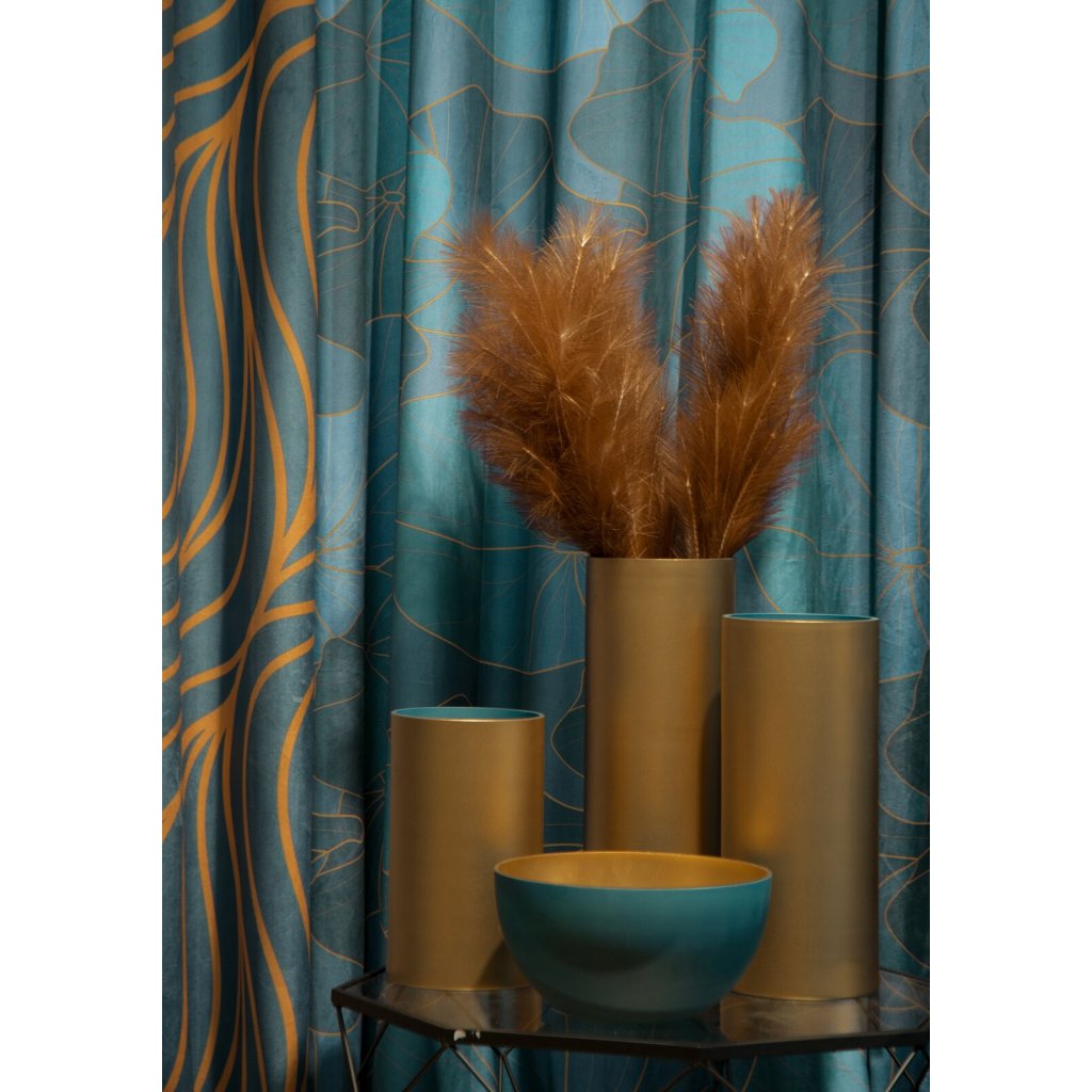 Skleněná váza z limitované kolekce. Průměr: 15 cm, výška: 40 cm, barva: tyrkysová/zlatá, složení: 100 % skloDoplňkové parametry