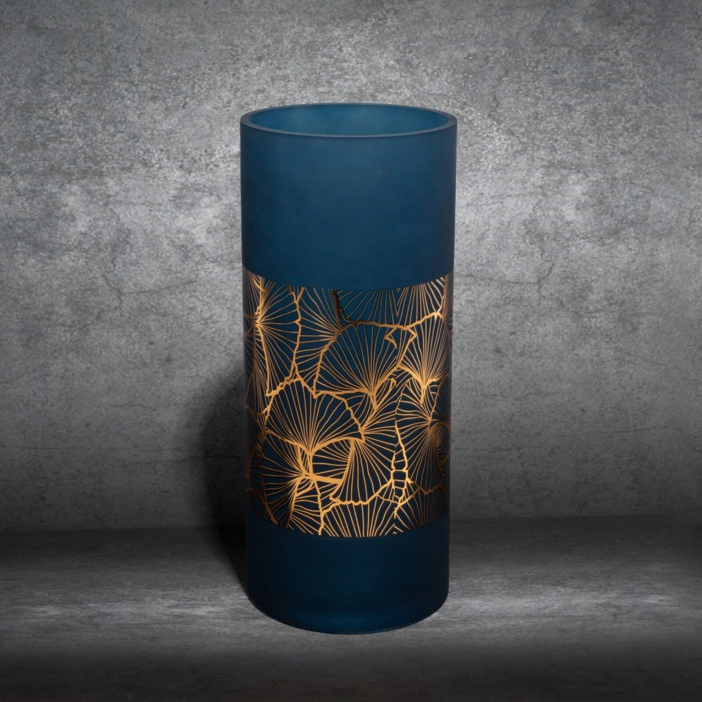 Skleněná váza Limitovaná kolekce. Průměr: 15 cm, výška: 35 cm, barva: tmavě modrá/zlatá, složení: 100% skloDoplňkové parametry