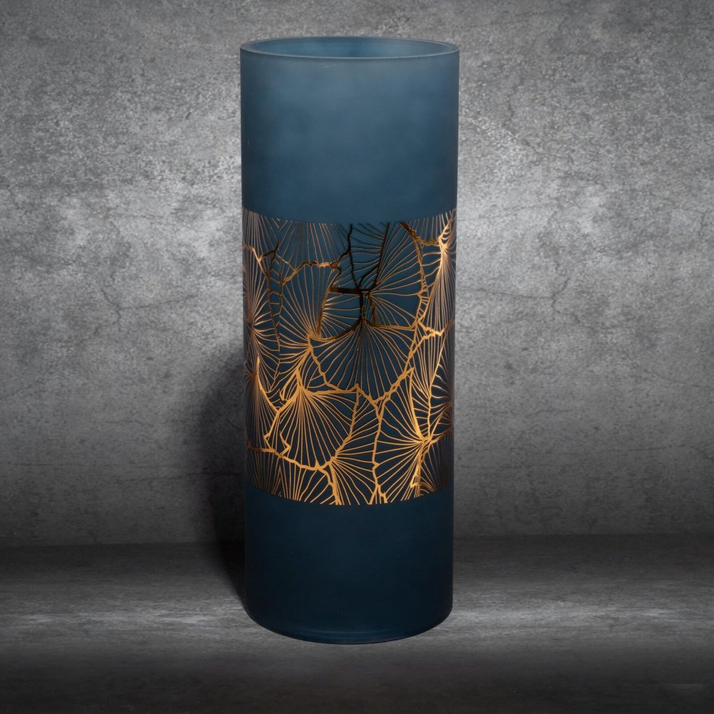 Skleněná váza z limitované kolekce. Průměr: 15 cm, výška: 40 cm, barva: tmavě modrá/zlatá, složení: 100 % skloDoplňkové parametry