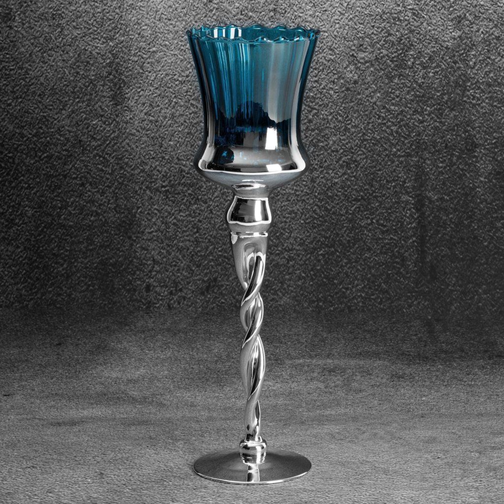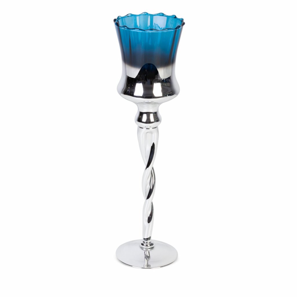 Dekorativní svícen šířka: (fi) 10 cm, délka: 35 cm, barva: stříbrná/modrá, složení: 100 % skloDoplňkové parametry