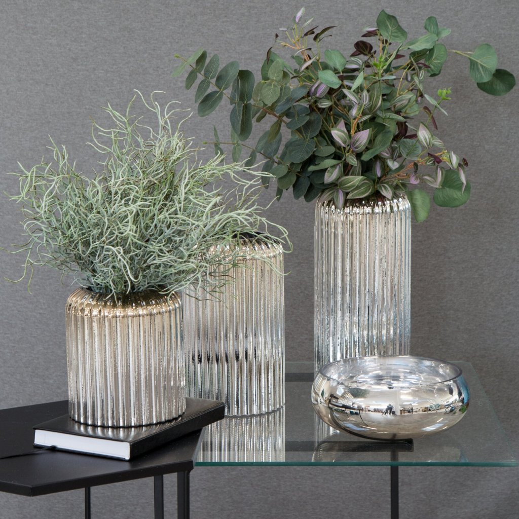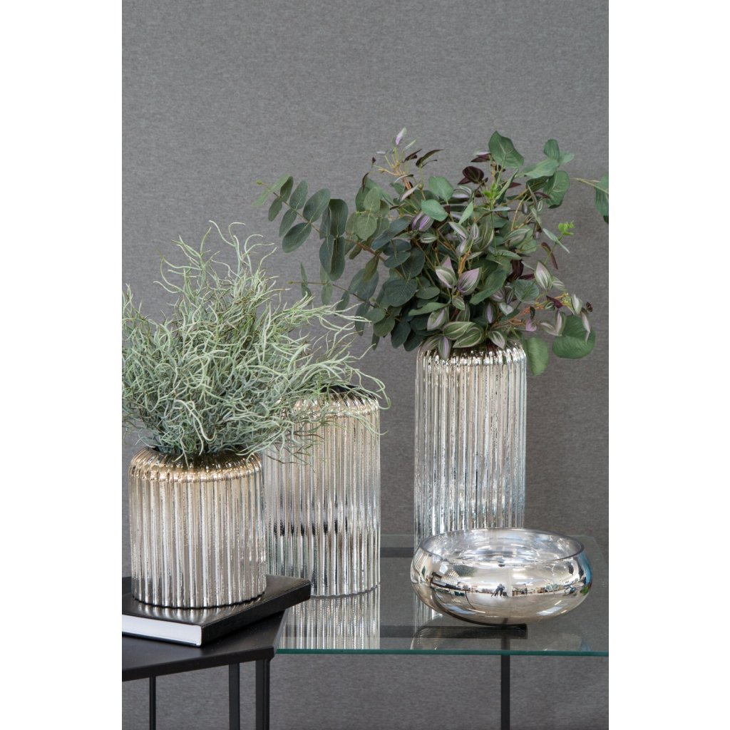 SKLENĚNÝ DEKORAČNÍ SVÍTNÍK NELA2 (01) (FI) 12X8 CM STŘÍBRNÝ