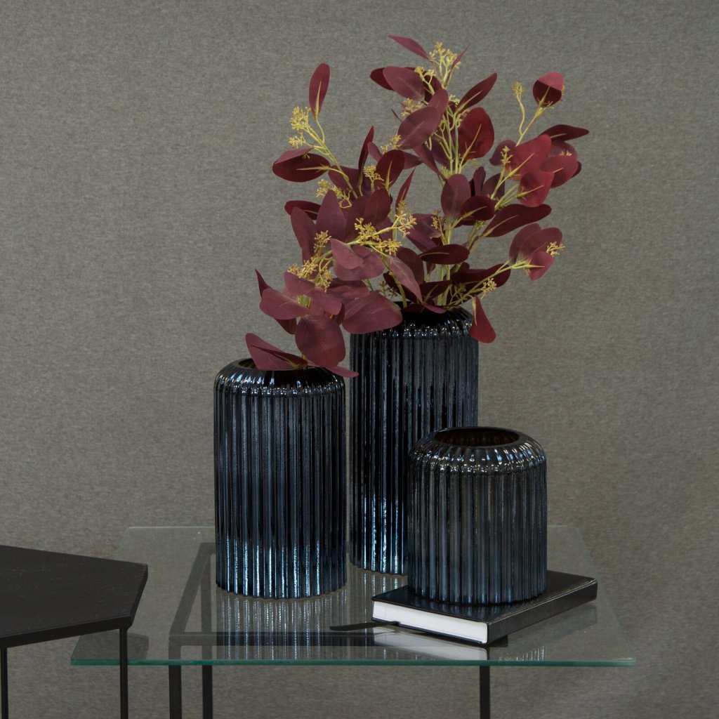SKLENĚNÝ DEKORAČNÍ SVÍTNÍK NELA3 (01) (FI) 12X8 CM NÁMOŘNICKÁ MODRÁ