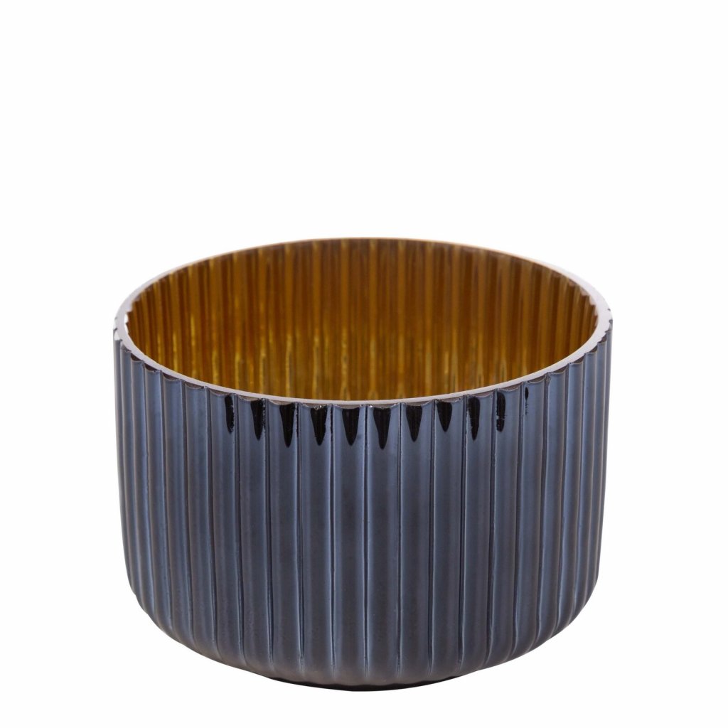 Dekorativní svícen šířka: (fi) 12 cm, délka: 8 cm, barva: tmavě modrá/zlatá, složení: 100 % skloDoplňkové parametry