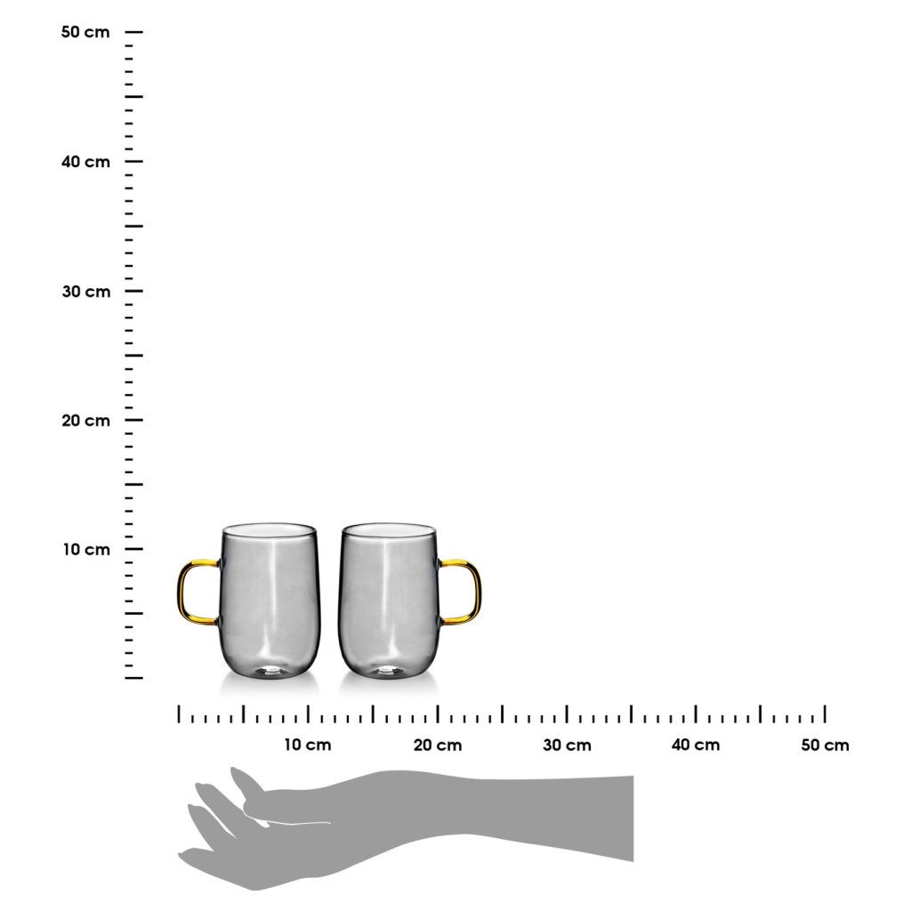 Sada dvou elegantních hrníčků vyrobených z kouřového skla je výbornou volbou pro lidi, kteří si cení moderní design a vysokou kvalitu. Každý hrnek má stylovou zlatou ručku, která dodává nápoji nejen luxusní charakter, ale zajišťuje také pohodlné držení. Jsou ideální pro podávání teplých nápojů jako káva nebo čaj, ale i studených nápojů v elegantním prostředí. Hrníčky jsou nejen praktické, ale také jako dekorace na stůl, ladí s moderním a minimalistickým designem interiéru. Díky solidnímu zpracování budou tyto hrníčky sloužit dlouhou dobu a svým jedinečným designem jistě upoutají pozornost hostů.Doplňkové parametry