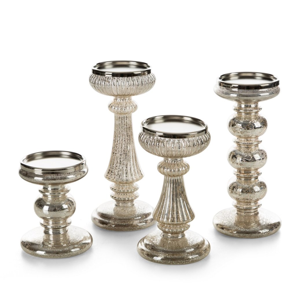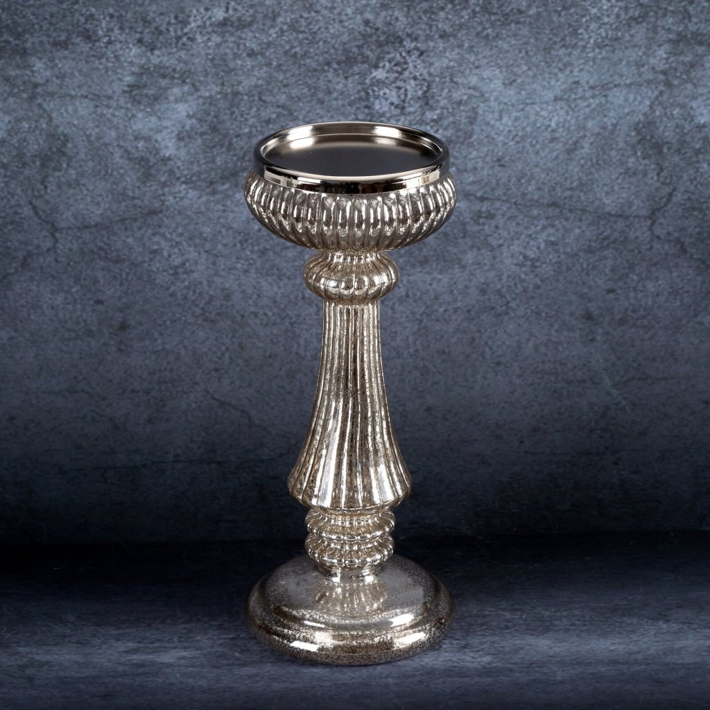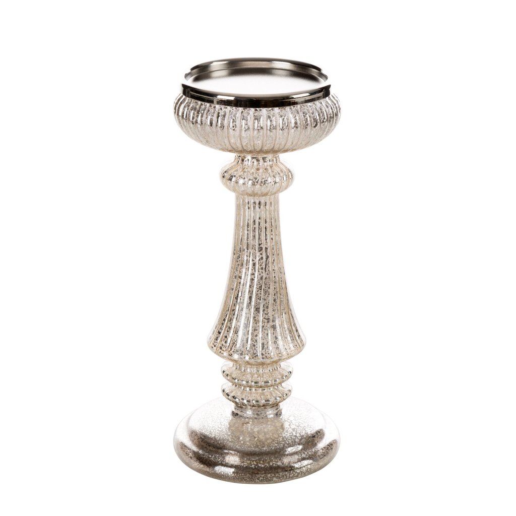 SKLENĚNÝ SVÍCEN 13B 11X25 CM STŘÍBRNÁ