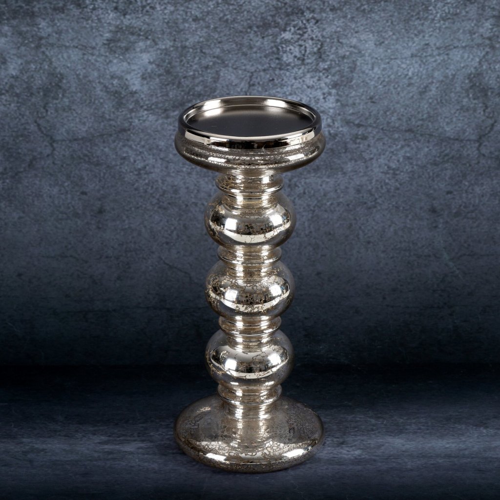 SKLENĚNÝ SVÍCEN 15B 11X25 CM STŘÍBRNÁ