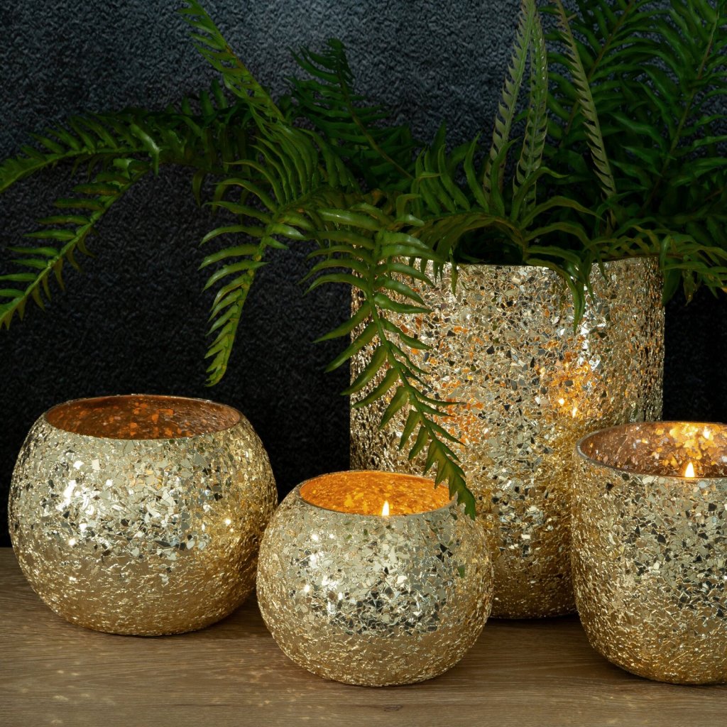 SKLENĚNÝ SVÍCEN MELIA (05) 12X12 CM ZLATÁ