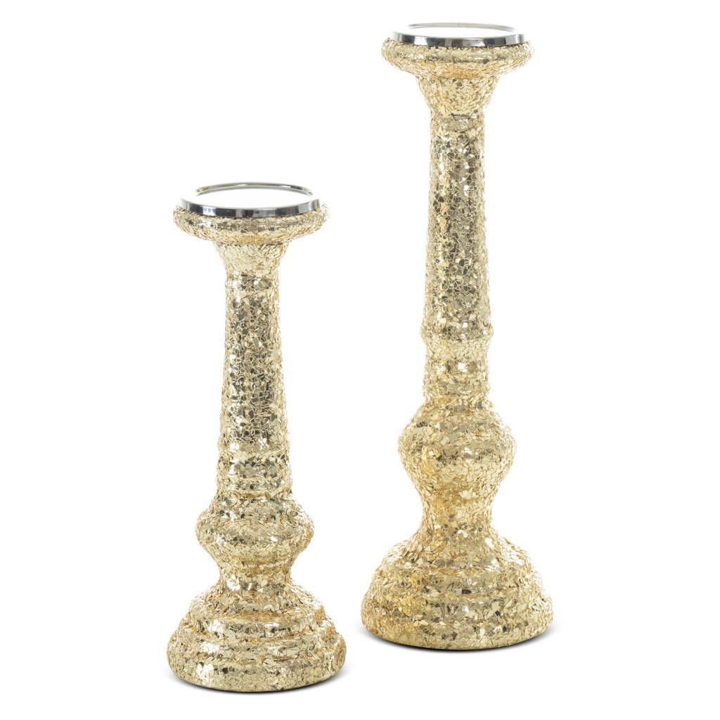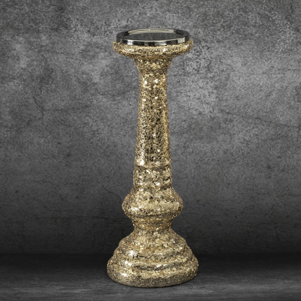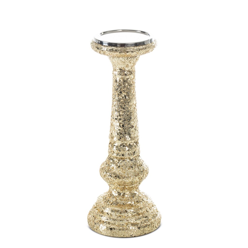 Dekorativní svícen, šířka: (fi) 12 cm, délka: 31 cm, barva: zlatá, složení: 95% sklo, 5% kov.Doplňkové parametry