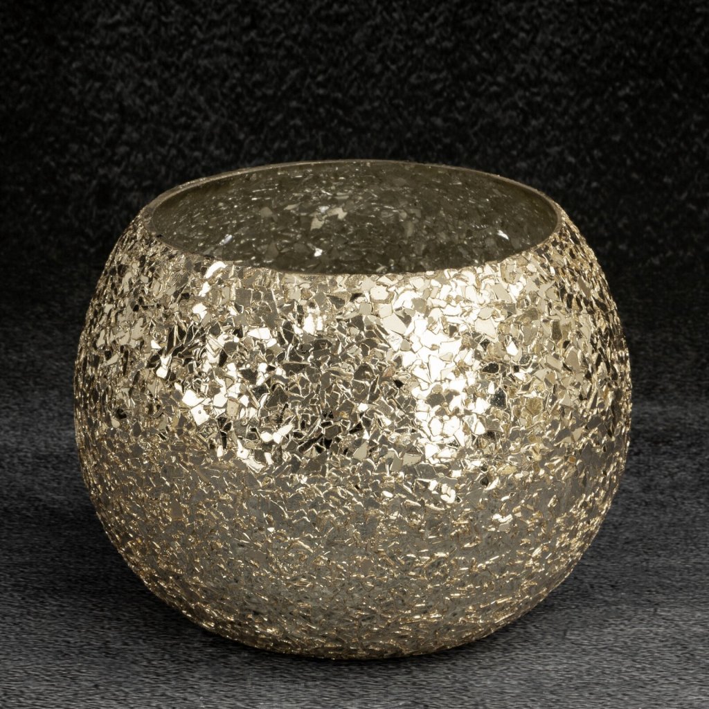 Dekorativní svícen, šířka: 14 cm, délka: 14 cm, výška: 10 cm, barva: zlatá, složení: sklo.Doplňkové parametry