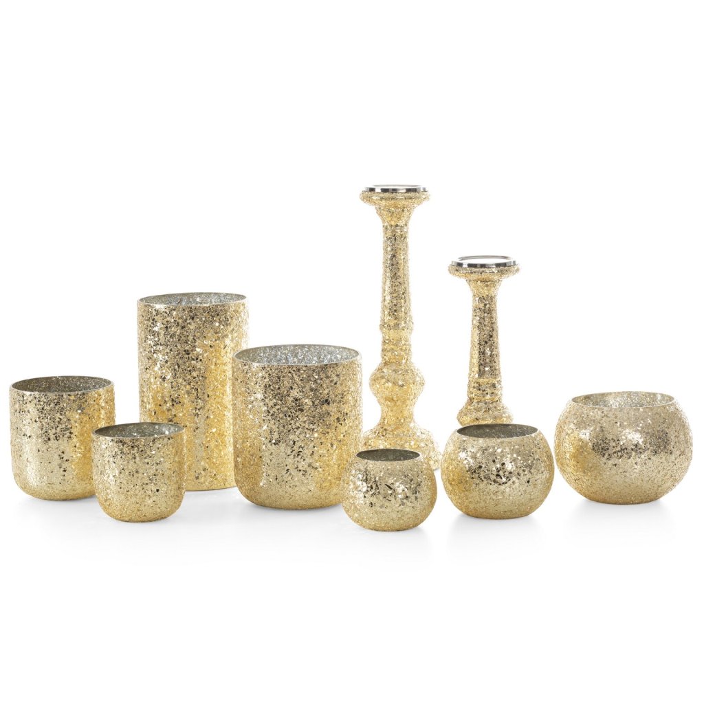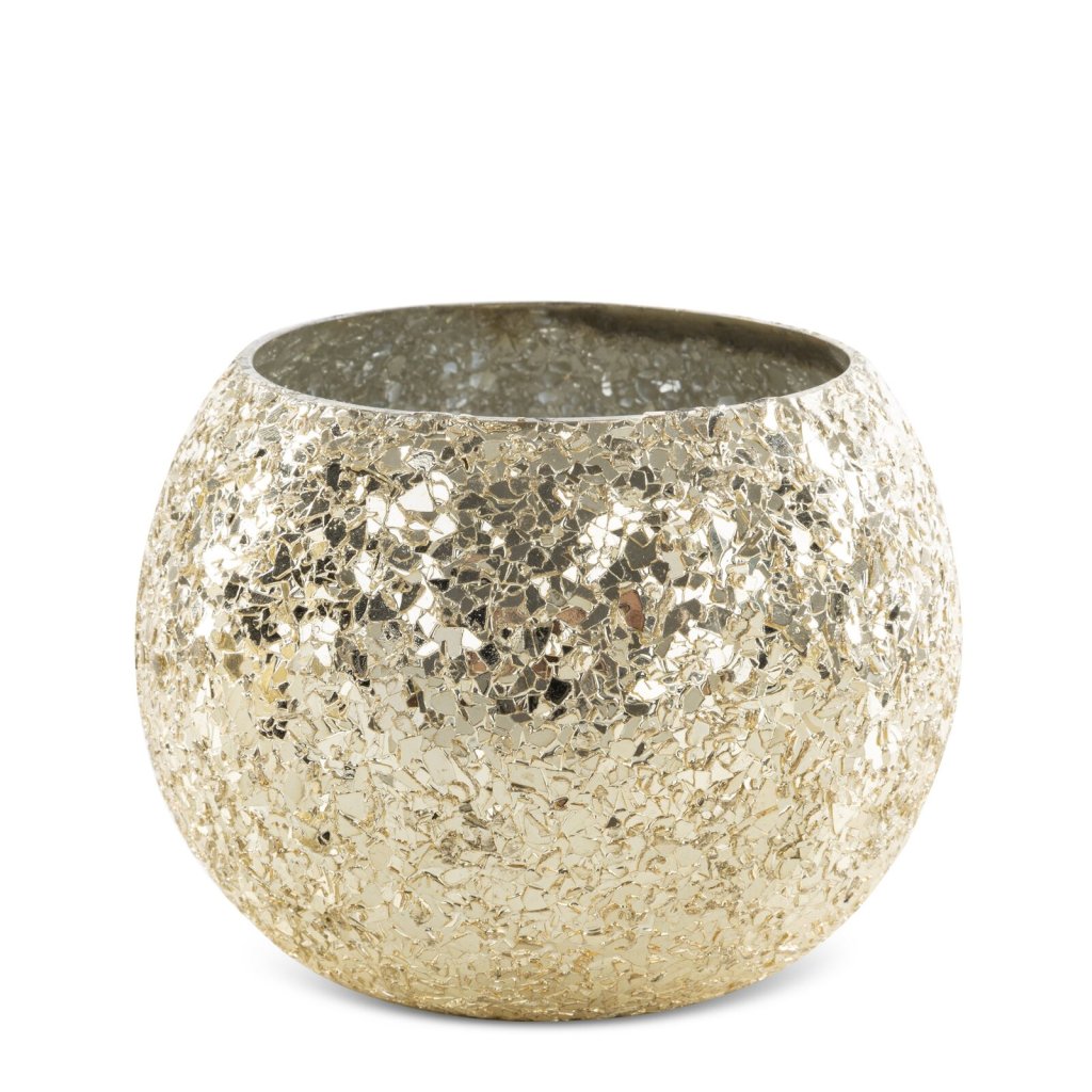 SKLENĚNÝ SVÍCEN MELIA 14X14X10 CM ZLATÁ