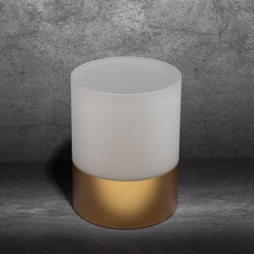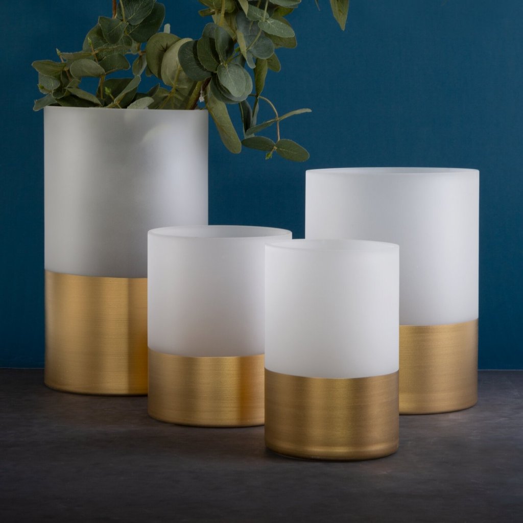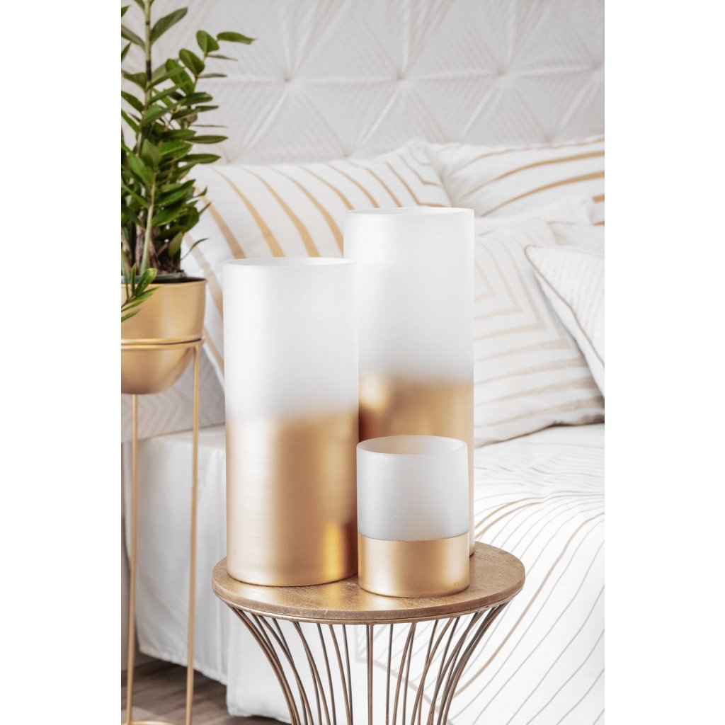Skleněný svícen z limitované kolekce. Průměr: 15 cm, výška: 20 cm, barva: bílá/zlatá, složení: 100 % skloDoplňkové parametry