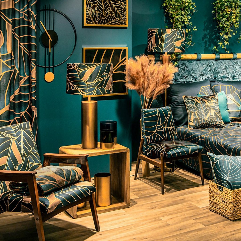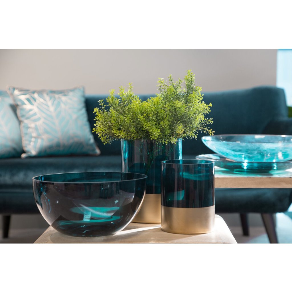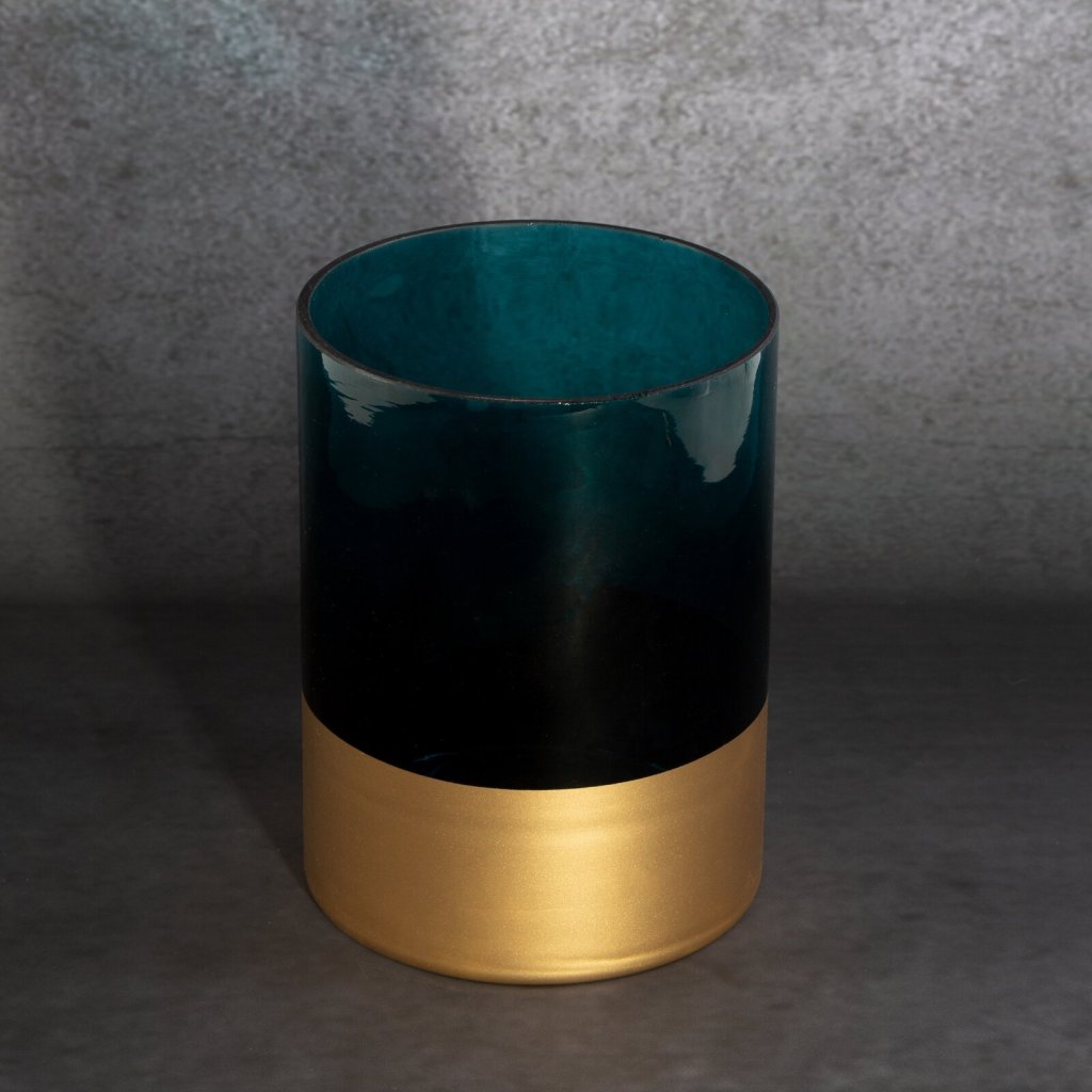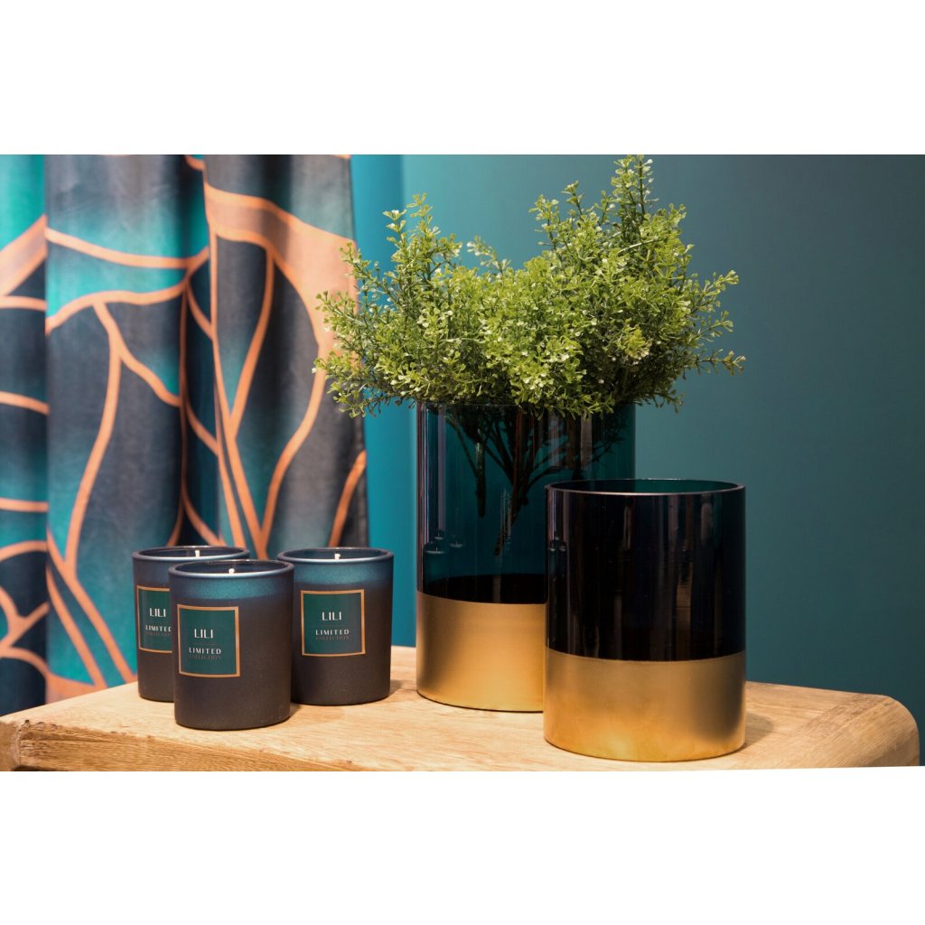 SKLENĚNÝ SVÍTNÍK LIMITED COLLECTION LILI 15X20 CM TYRKYSOVÁ/ZLATÁ