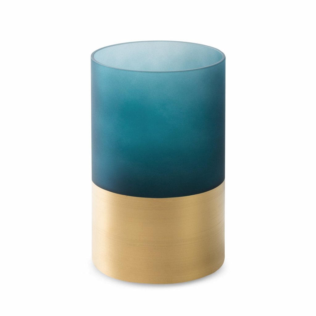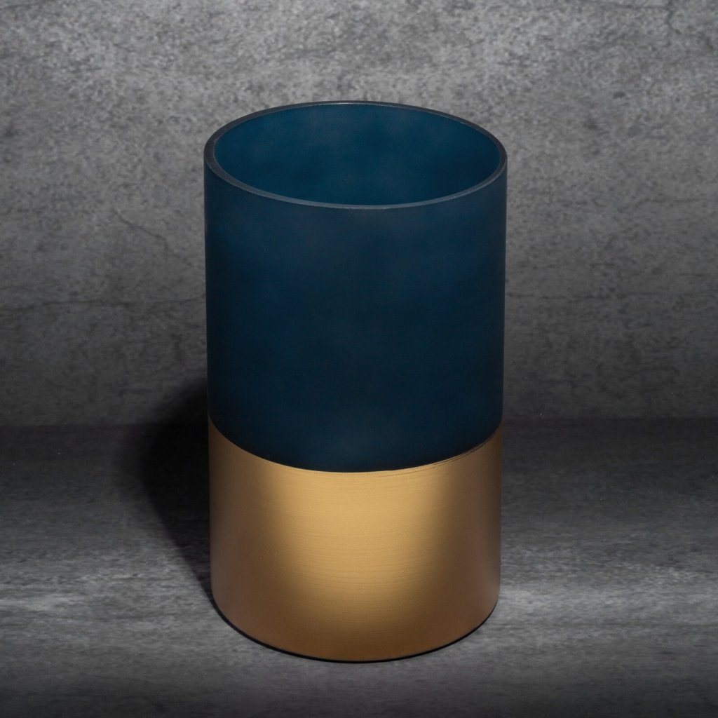 SKLENĚNÝ SVÍTNÍK LIMITED COLLECTION MUSA 12X20 CM TMAVĚMODRÁ/ZLATÁ