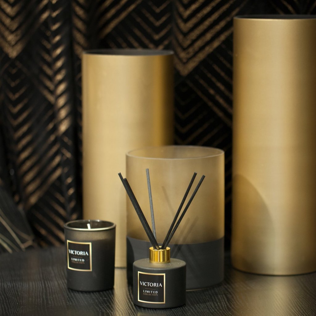 SKLENĚNÝ SVÍTNÍK LIMITED COLLECTION VICTORIA 15X20 CM ZLATÁ/ČERNÁ