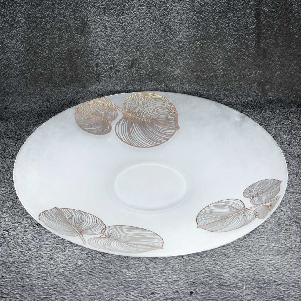 Limitovaná kolekce skleněných desek. Průměr: 37 cm, výška: 4 cm, barva: bílá/zlatá, složení: 100% skloDoplňkové parametry