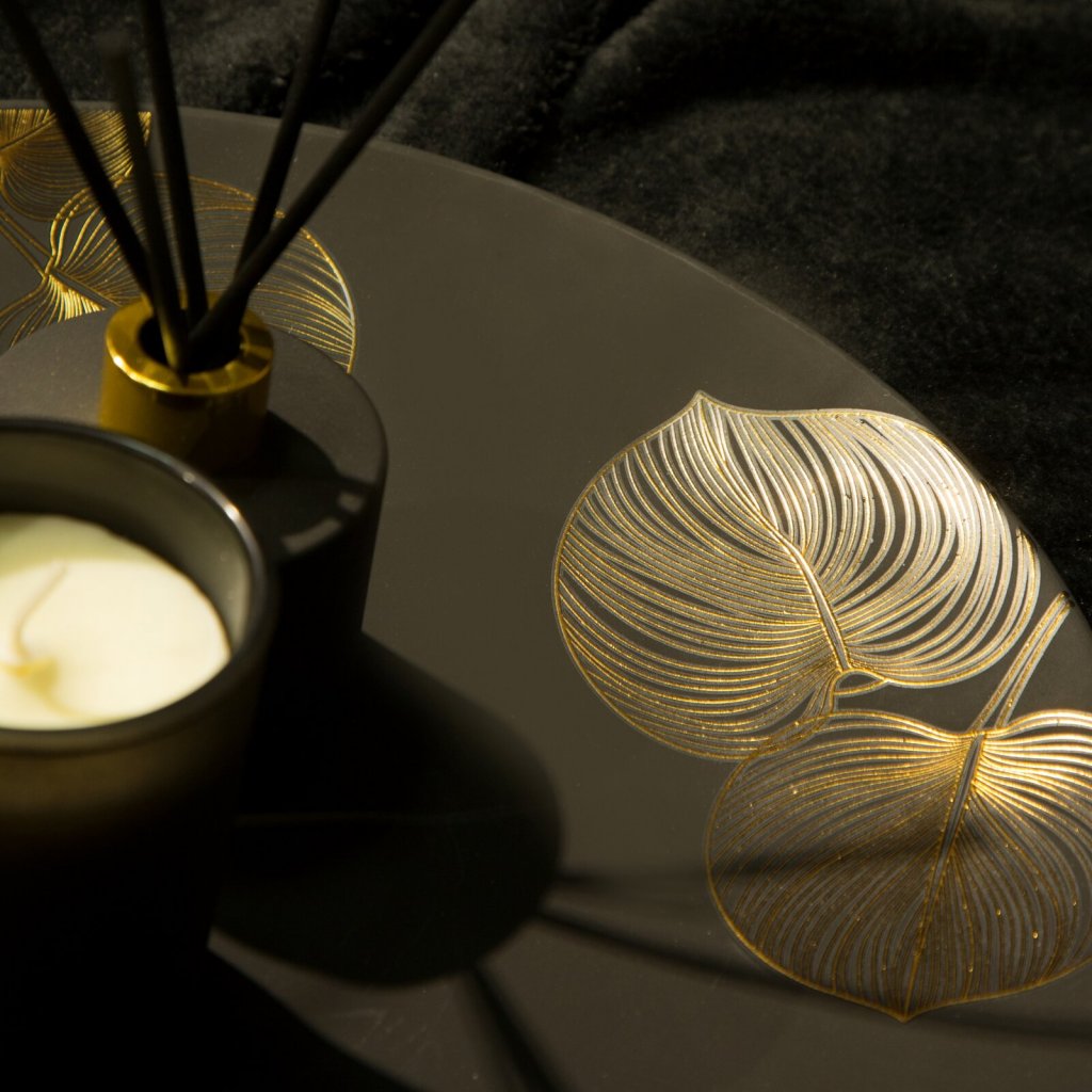 Limitovaná kolekce skleněných desek. Průměr: 37 cm, výška: 4 cm, barva: černá/zlatá, složení: 100% skloDoplňkové parametry