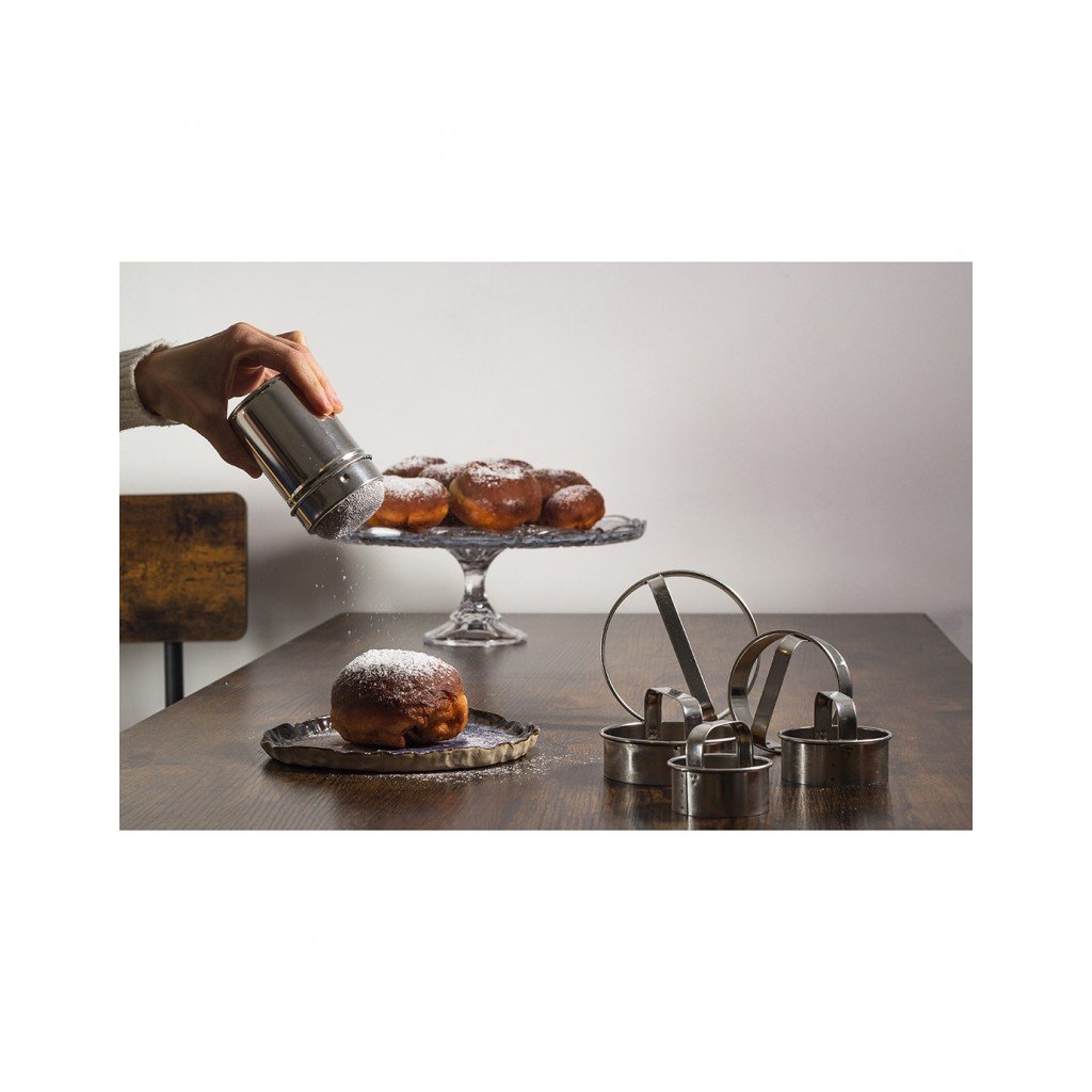 Speciální cukřenka na sypání moučkového cukru, cukřenka na sypání moučkového cukru na pečivo - byla vyrobena z nejkvalitnějšího anglického cínu. Cukřenku lze použít i na jiné sypké výrobky, např. skořici.Materiál: anglický cín