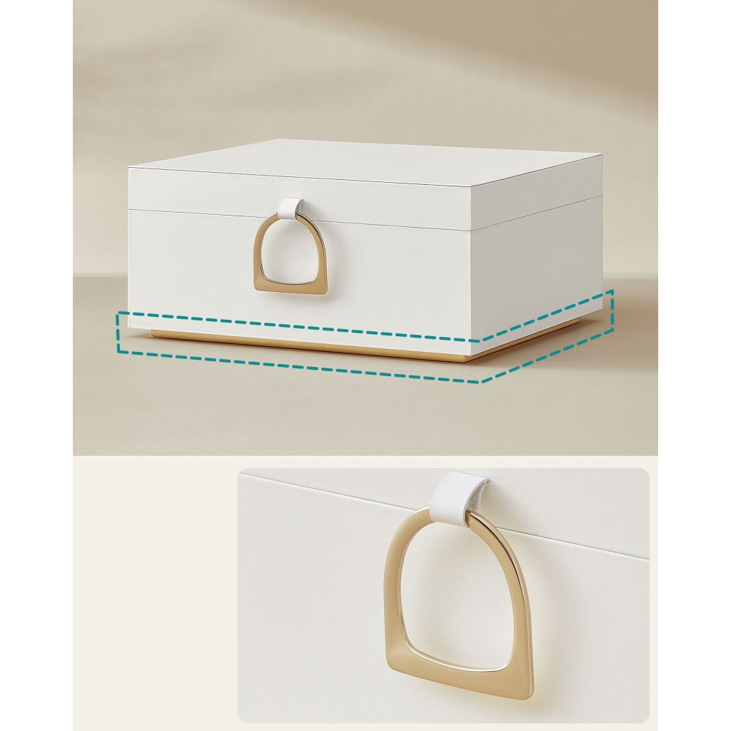 Šperkovnice Emily o rozměrech 20,5×24×11 cm je elegantním řešením pro všechny, kteří si potrpí na přehledné a stylové uspořádání šperků. Díky kovové rukojeti na víku působí sofistikovaně a usnadňuje každodenní používání.