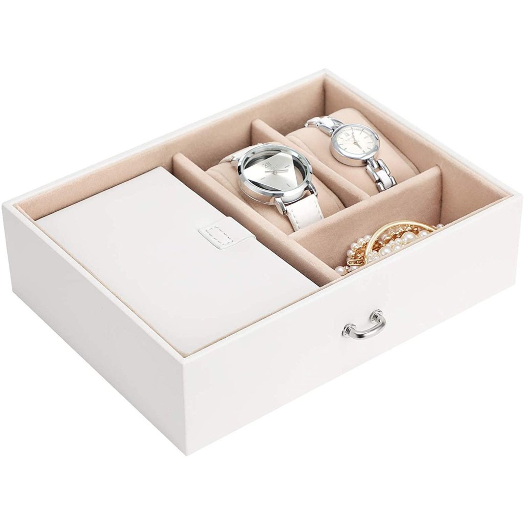 Šperkovnice + mini šperkovnice Esther, 18x26x17 cm + 14x9x3,5 cm, bílá