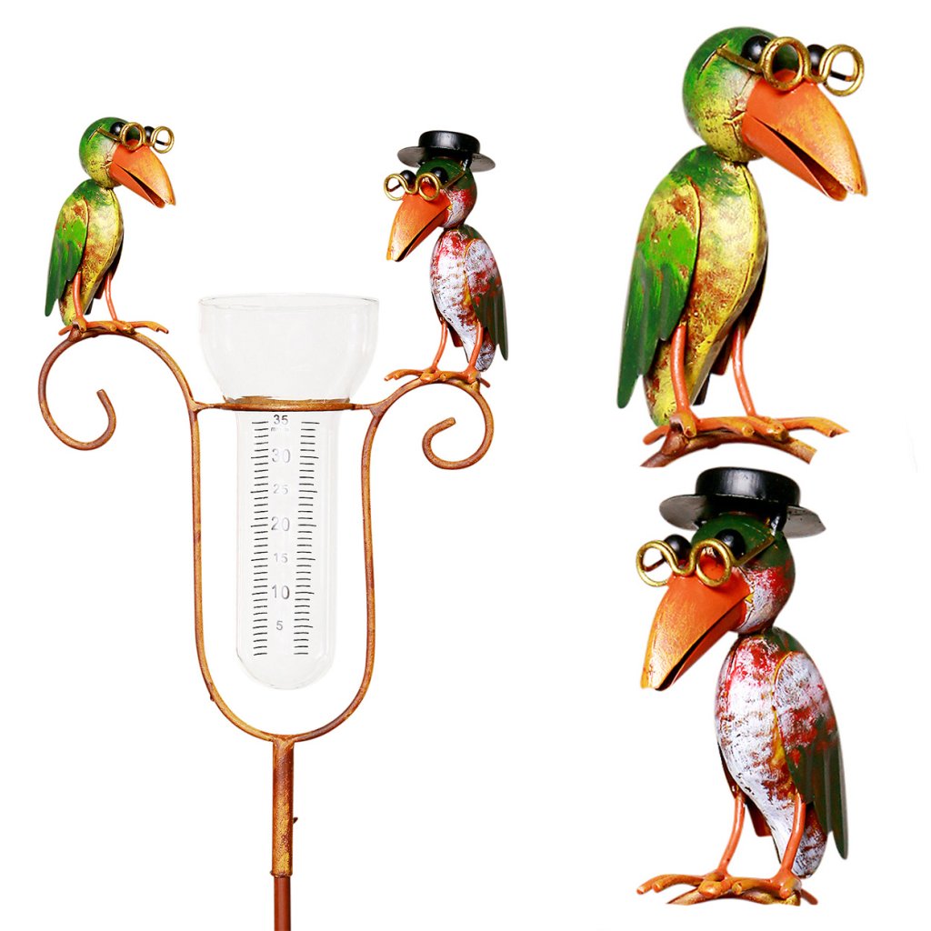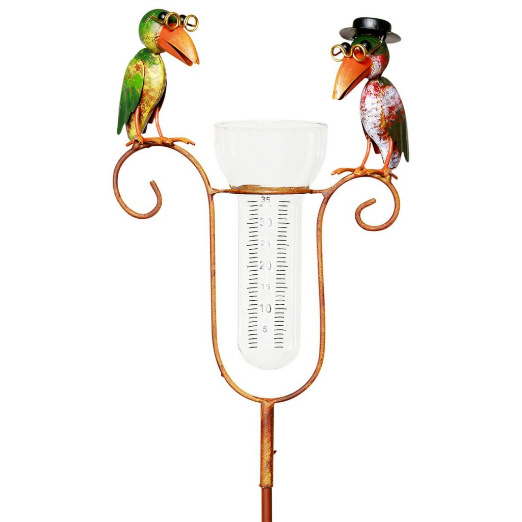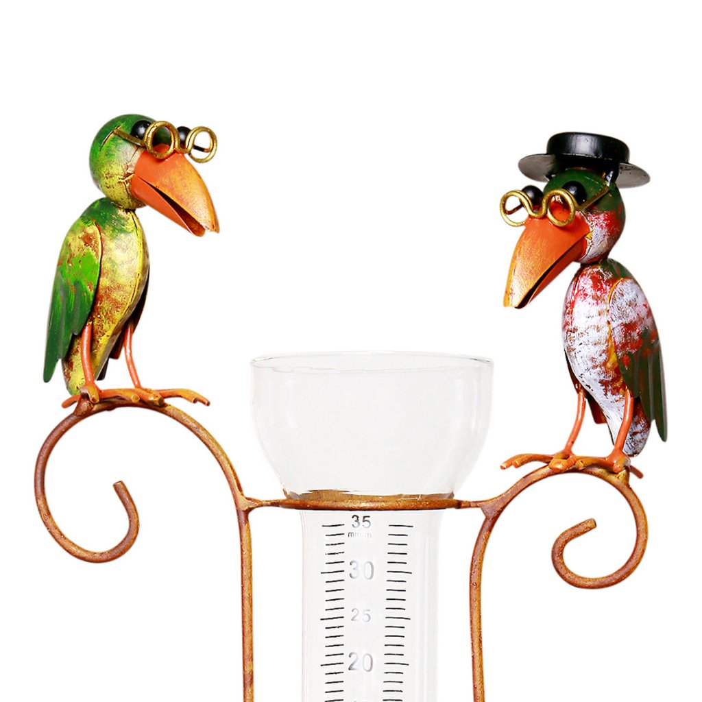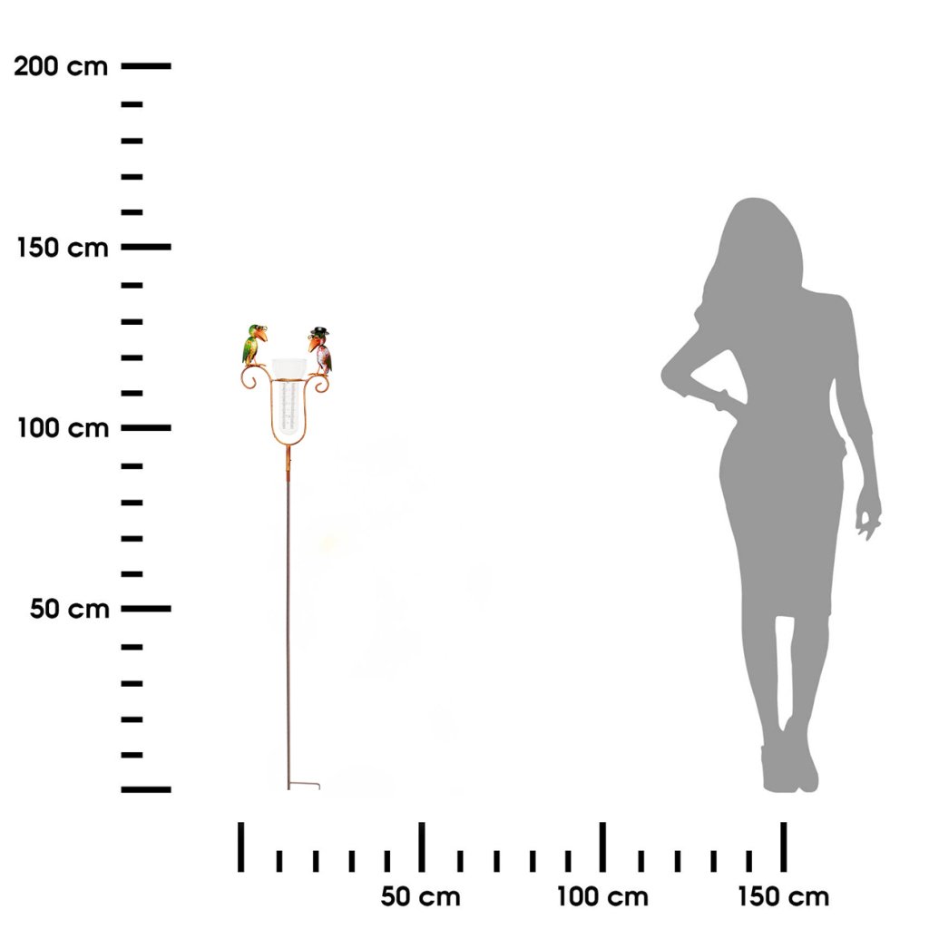 Srážkoměr Jackson spojuje praktickou funkci měření dešťových srážek s hravou estetikou, která vnese do zahrady nádech pohádkové atmosféry. Dva pestrobarevné ptáčci s brýlemi a kloboukem působí jako milý dekorativní prvek, který zároveň plní užitnou funkci. Výška celé sestavy je 129,5 cm, přičemž konstrukce je vyrobena z odolného kovu a srážkoměrný válec z průhledného skla disponuje čirým a snadno čitelným měřítkem . Zařízení se jednoduše instaluje pomocí stabilní základny pro zapíchnutí do země a je navrženo tak, aby odolalo i nepříznivým povětrnostním podmínkám. Dekorativní srážkoměr tak obohatí každou zelenou plochu o funkční a vizuálně atraktivní detail.Doplňkové parametry