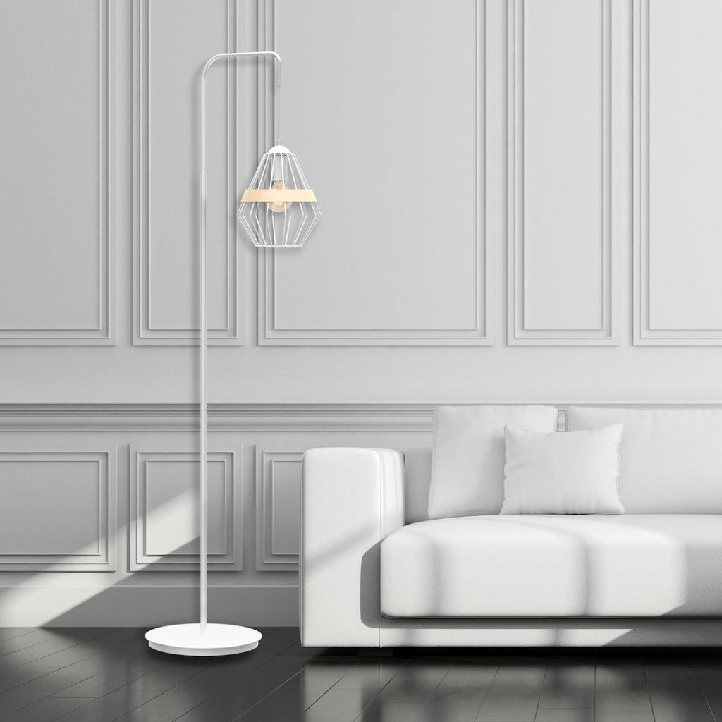 Stojací lampa Cliff, 1x dřevěné/bílé drátěné stínítko, w