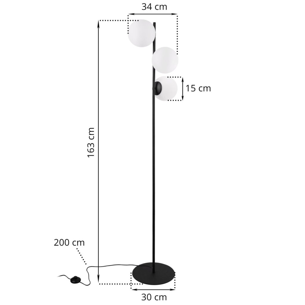 Stojací lampa Florence, 3x bílé skleněné stínítko, B