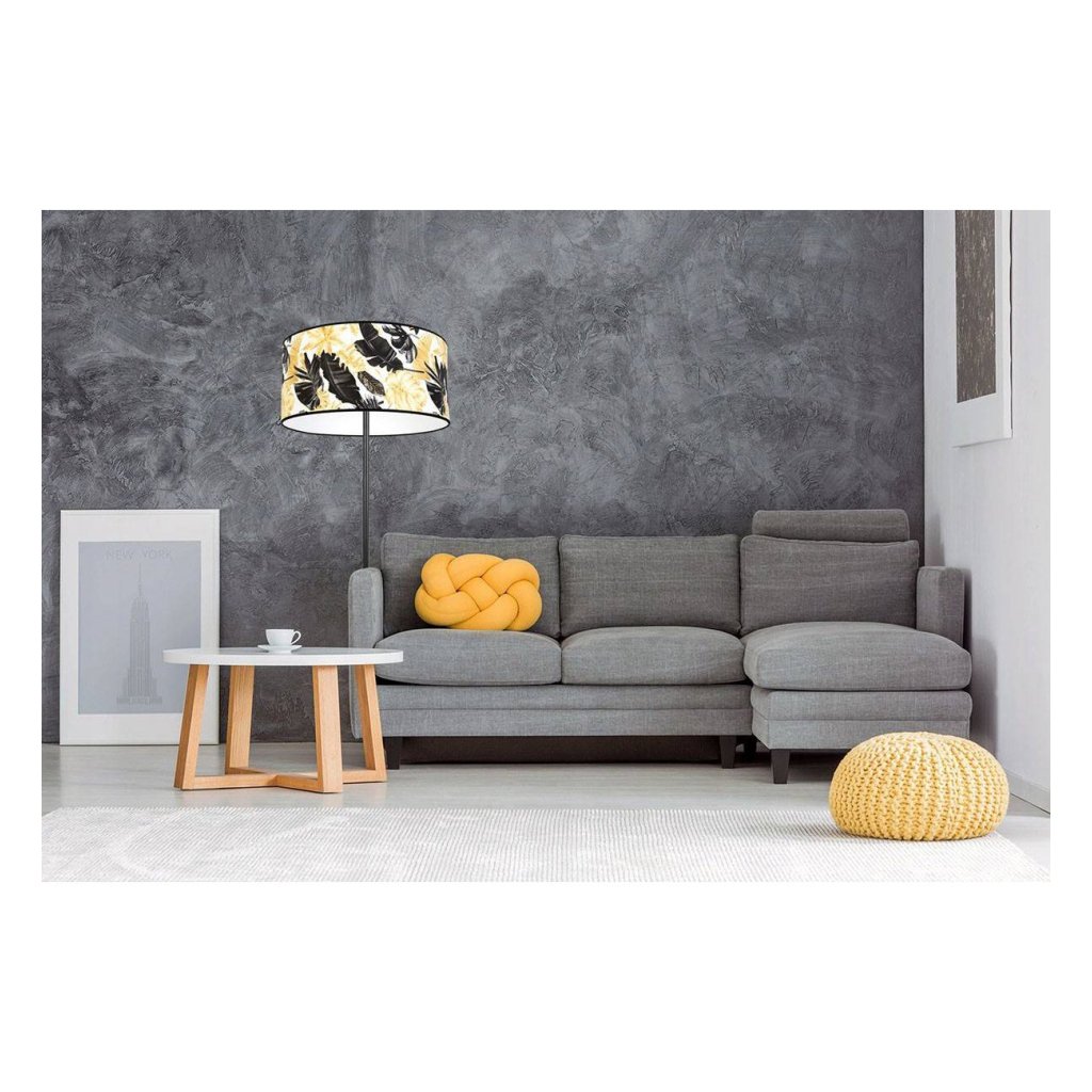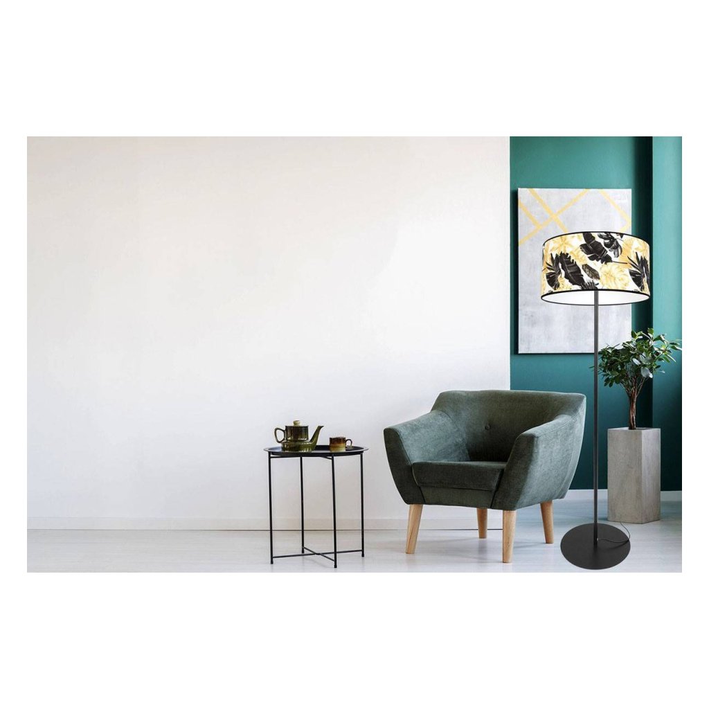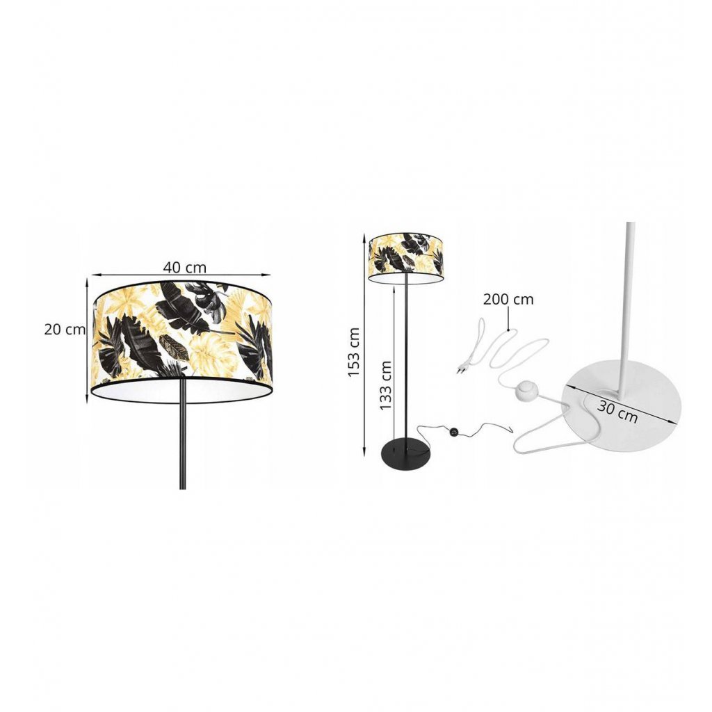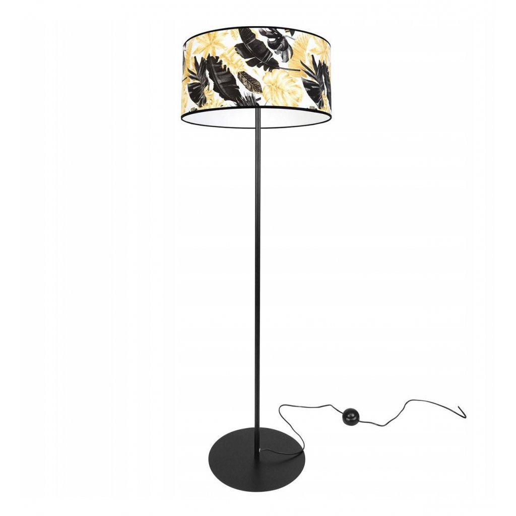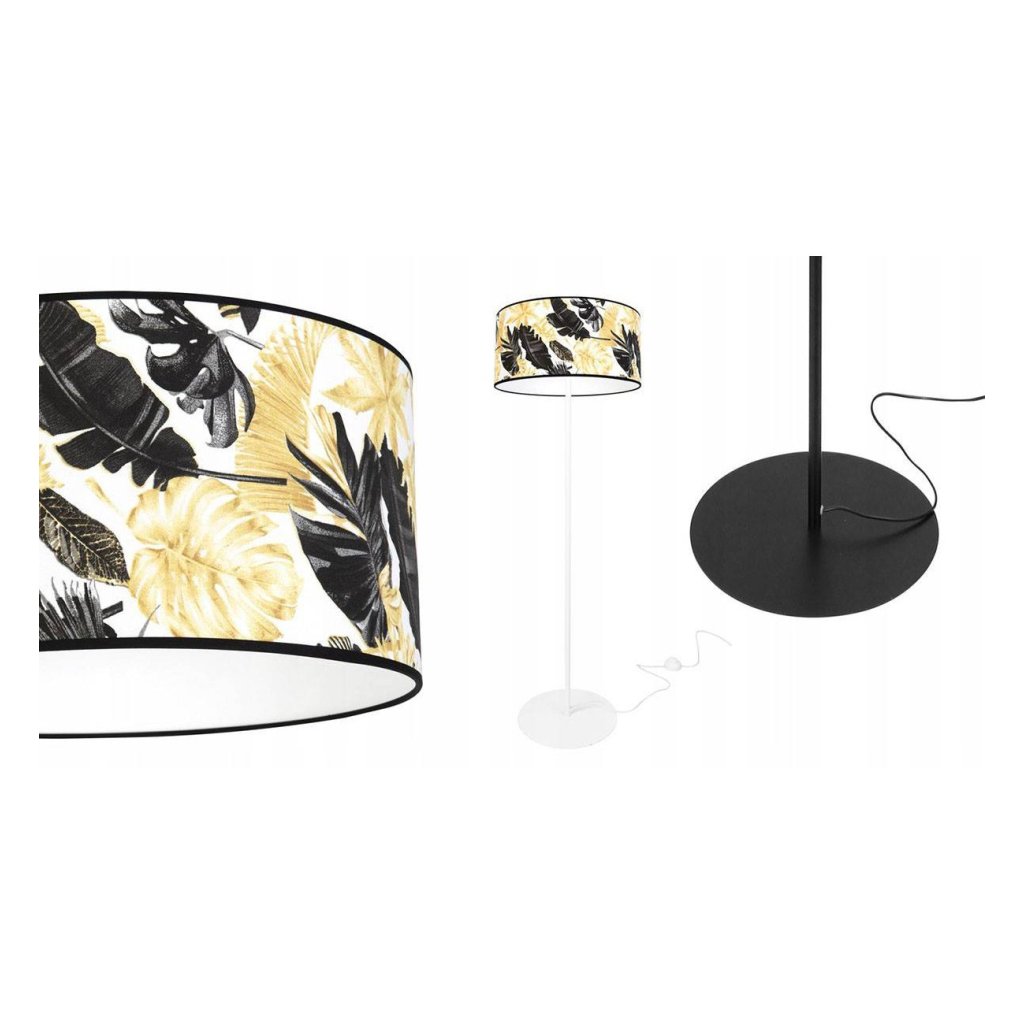 Stojací lampa Gold Flowers, 1x bílé textilní stínítko s květinovým vzorem, (výběr ze 2 barev konstrukce), (fi 40cm), o