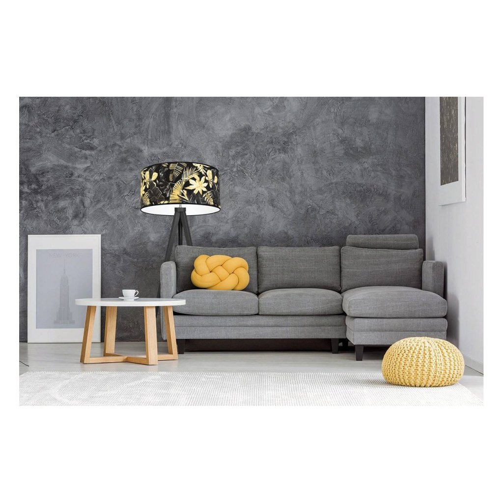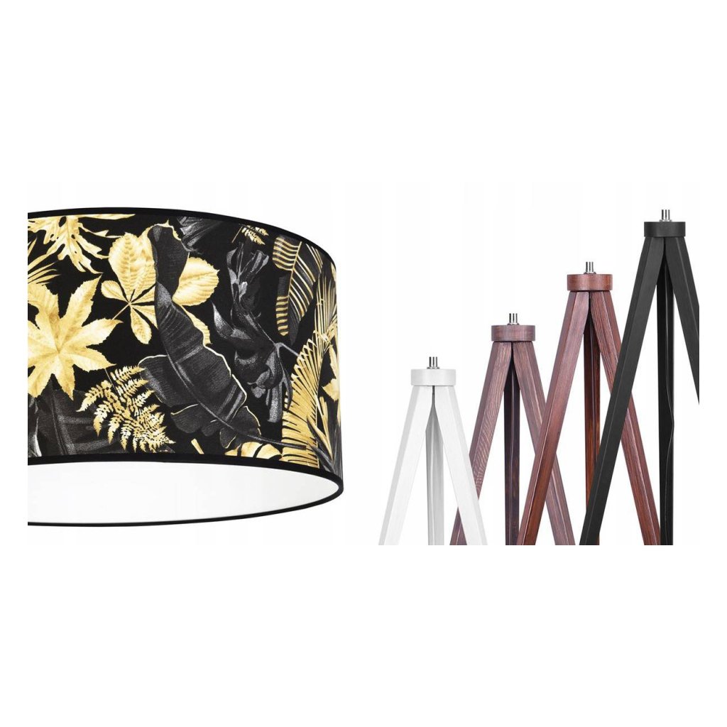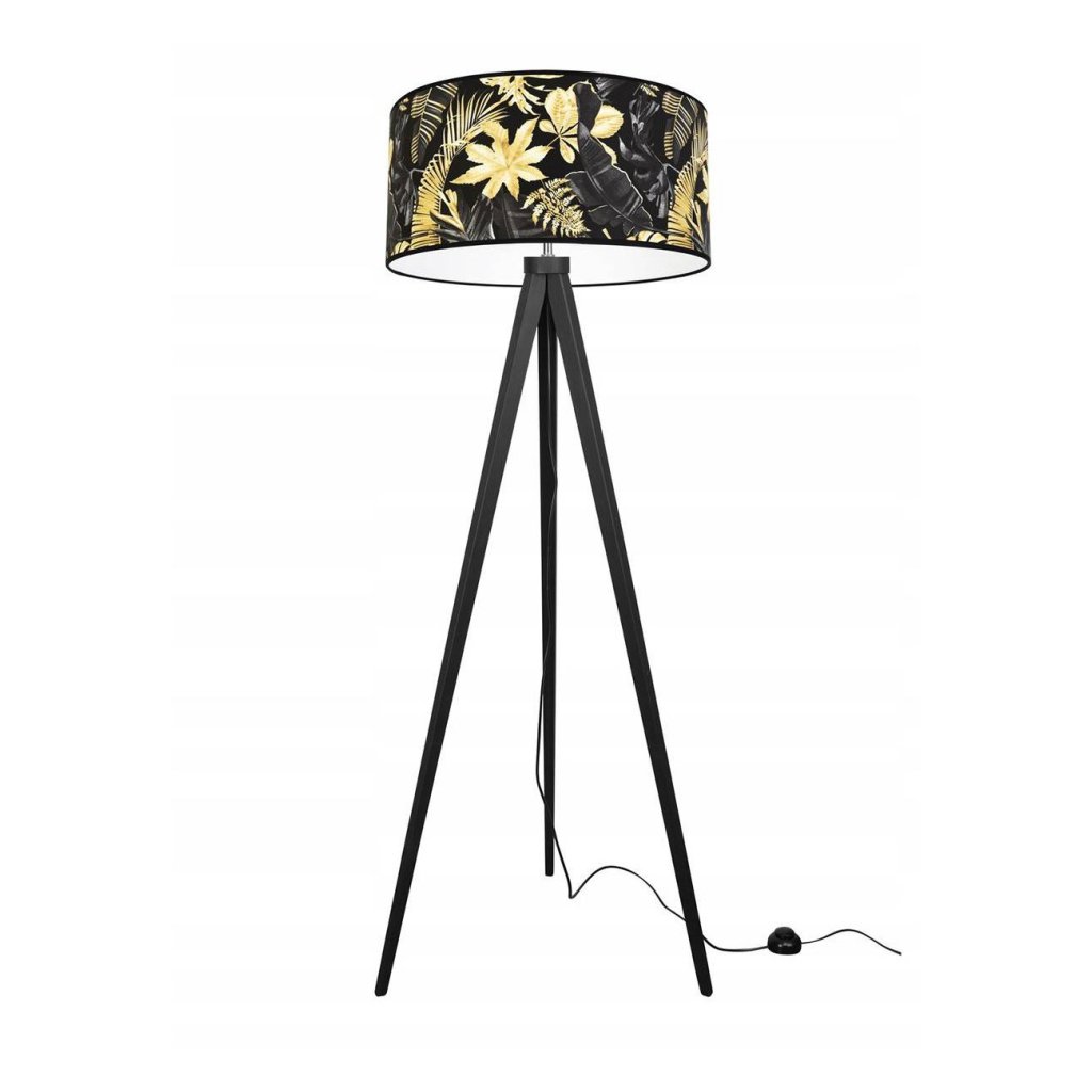 Stojací lampa Gold Flowers, 1x černé textilní stínítko s květinovým vzorem, (výběr ze 4 barev konstrukce), (fi 40cm)