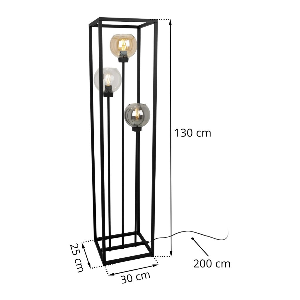Stojací lampa Haga Cage, 3x skleněné stínítko v kovovém rámu (mix 3 barev)