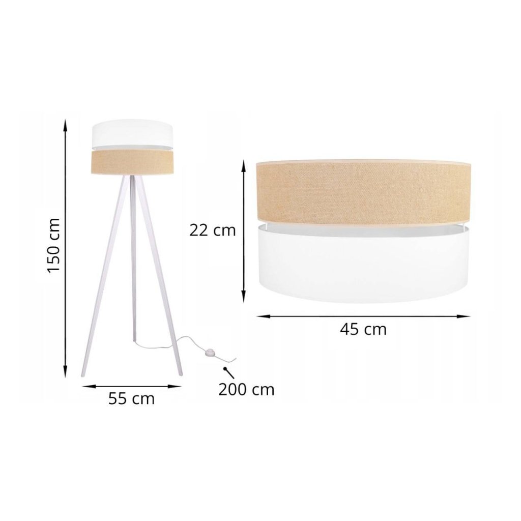 Stojací lampa Juta, 1x jutové/bílé textilní stínítko, w