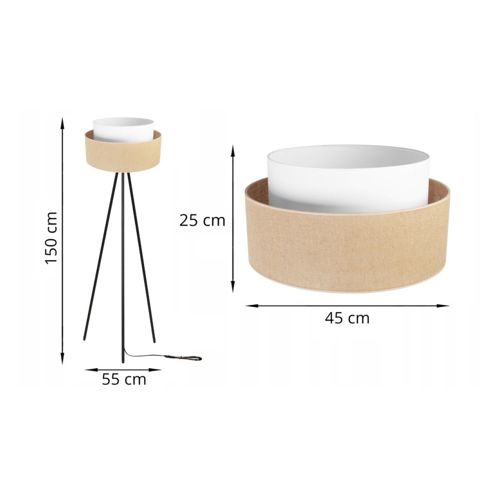 Stojací lampa Juta, 1x jutové/bílé textilní stínítko, (výběr ze 2 barev konstrukce), m