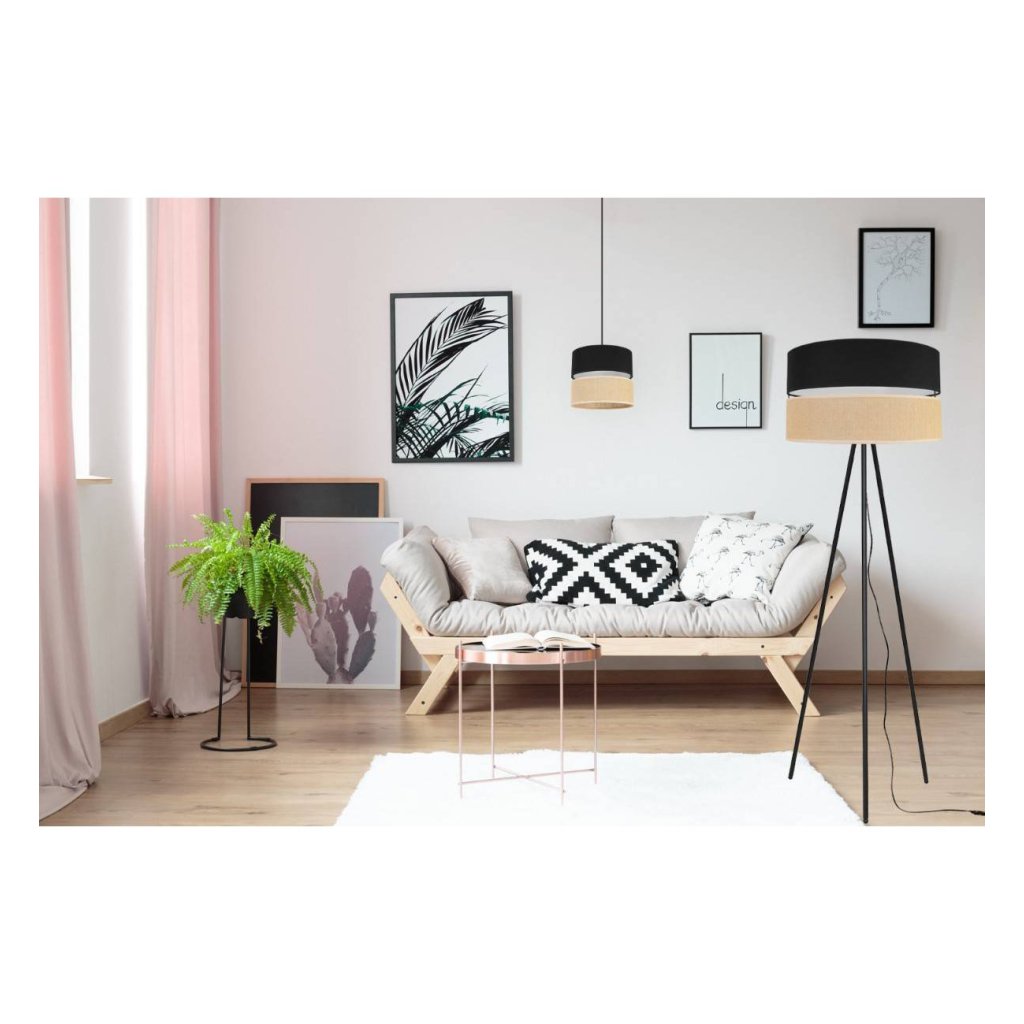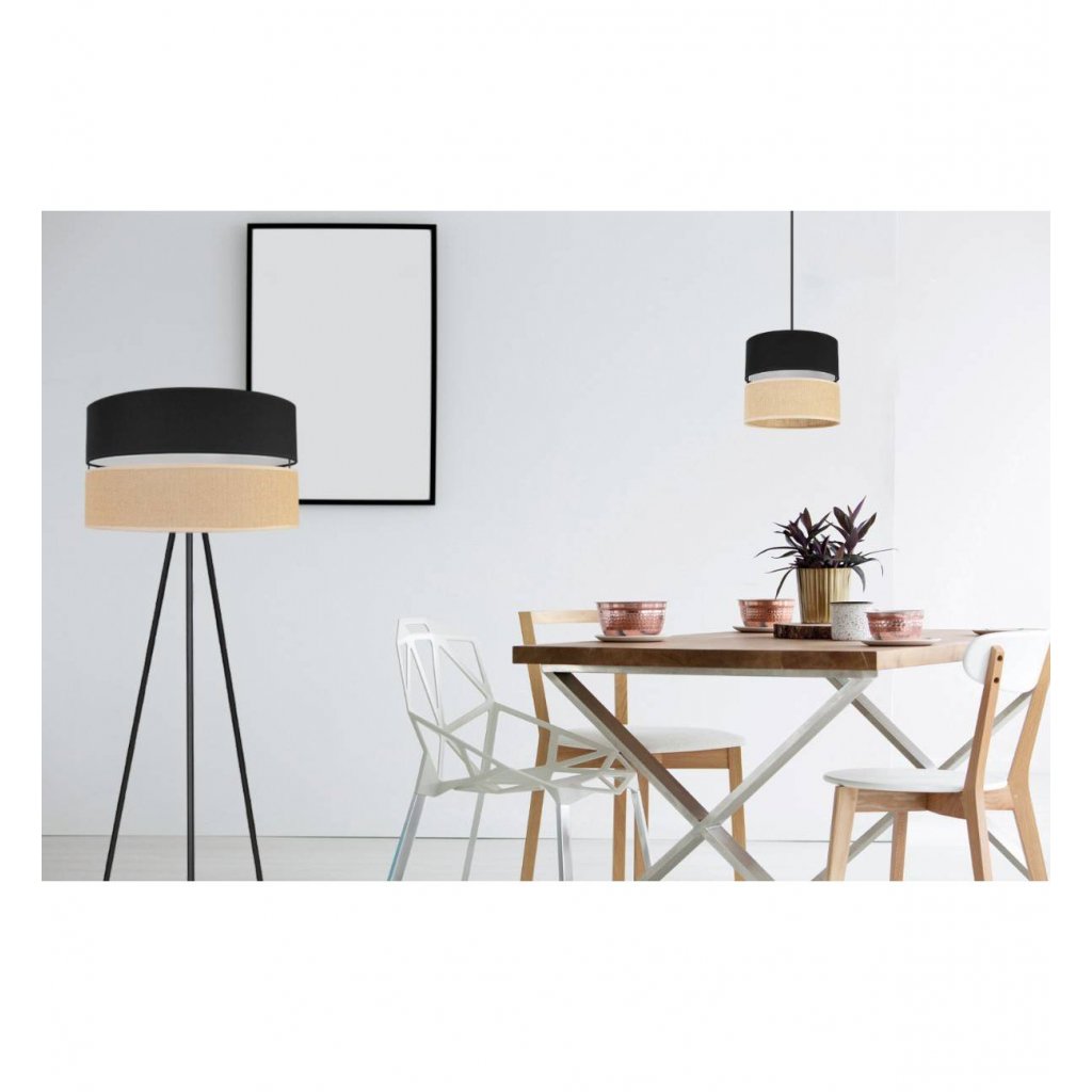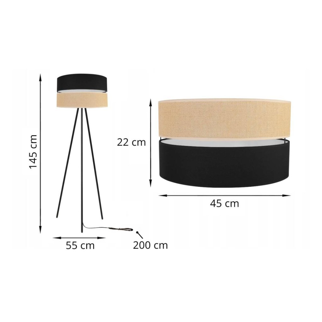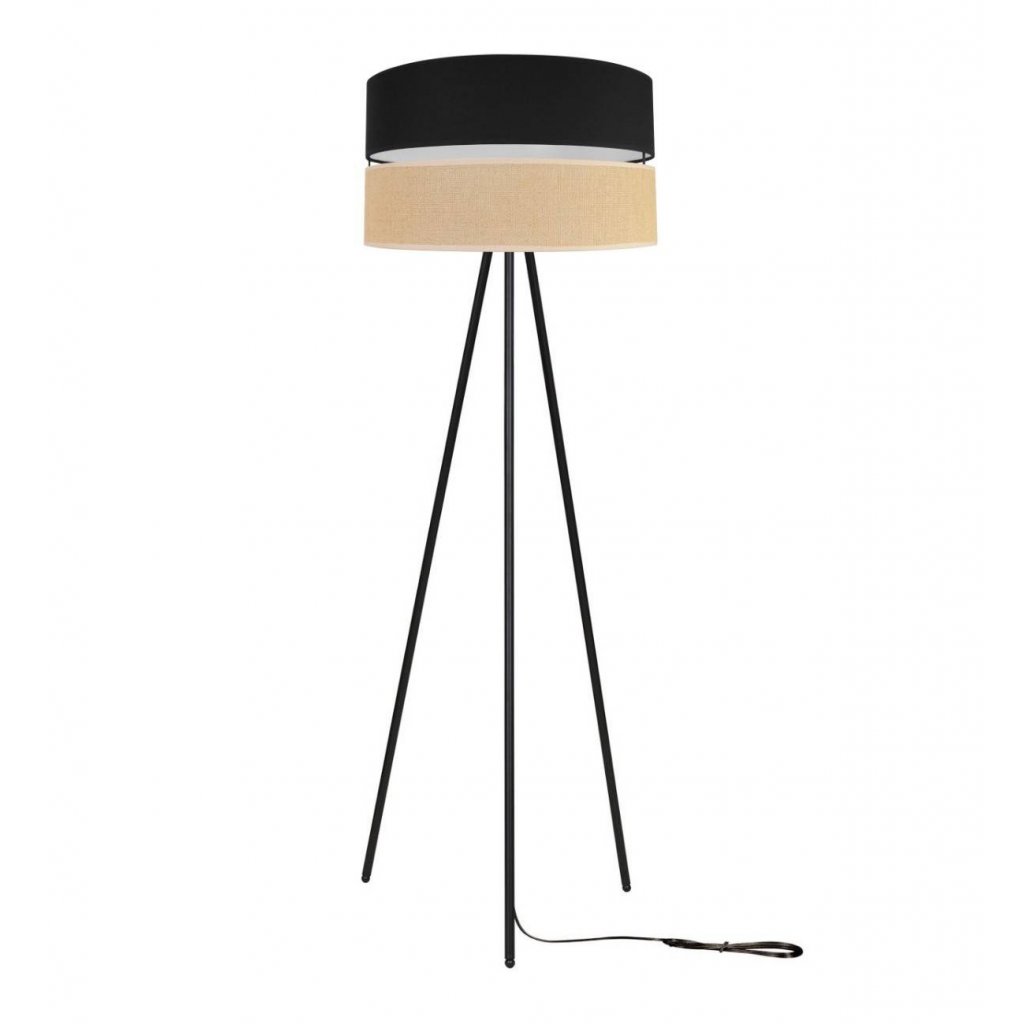 Stojací lampa Juta, 1x jutové/černé textilní stínítko, m, b