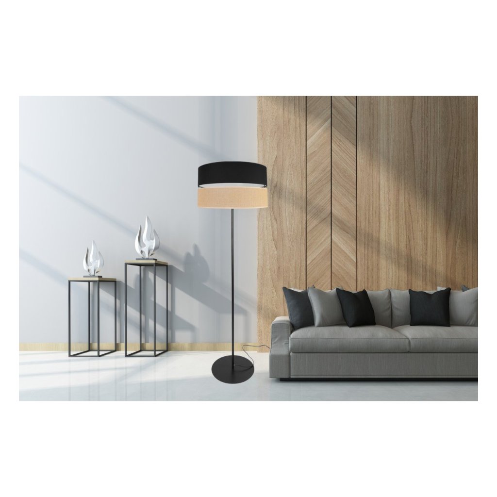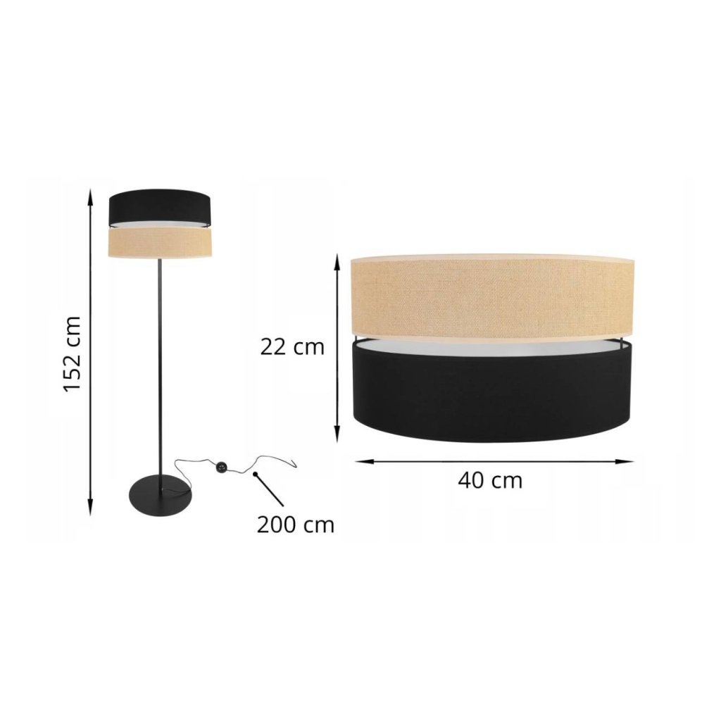 Stojací lampa Juta, 1x jutové/černé textilní stínítko, o, b