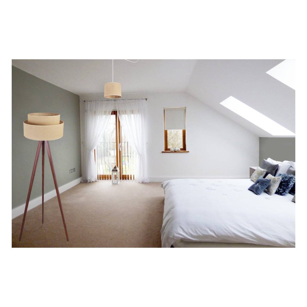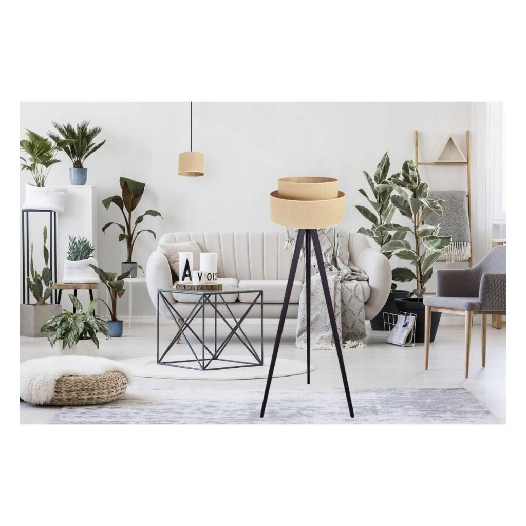 Stojací lampa Juta, 1x jutové stínítko, (výběr ze 6 barev konstrukce)