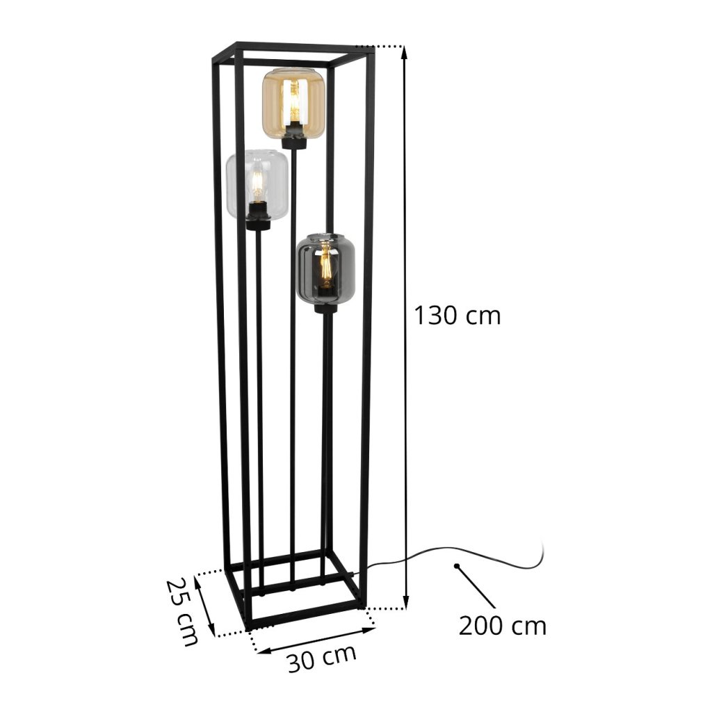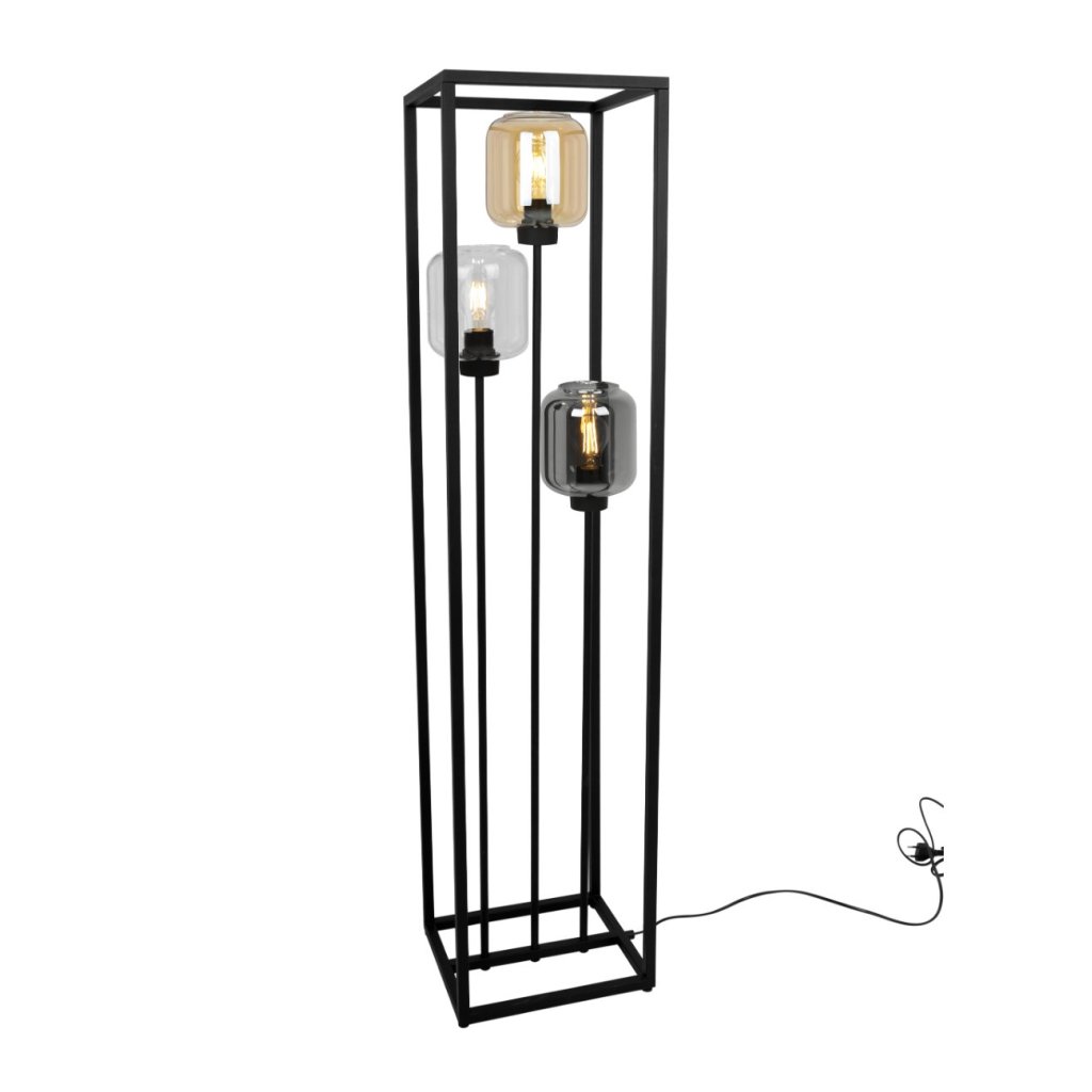 Stojací lampa Novalja Cage, 3x skleněné stínítko (mix 3 barev) v kovovém rámu