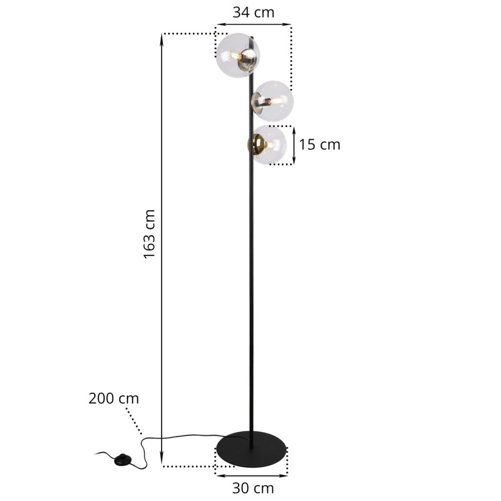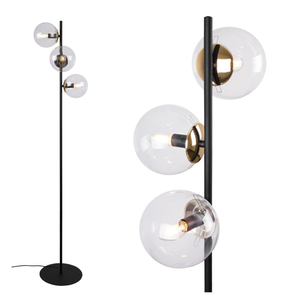 Stojací lampa Paris, 3x čiré skleněné stínítko, B/G