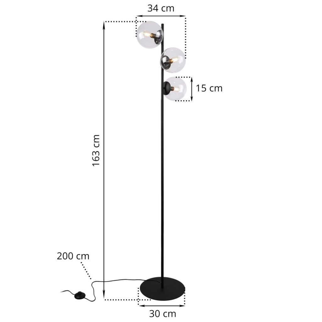 Stojací lampa Paris, 3x čiré skleněné stínítko, B