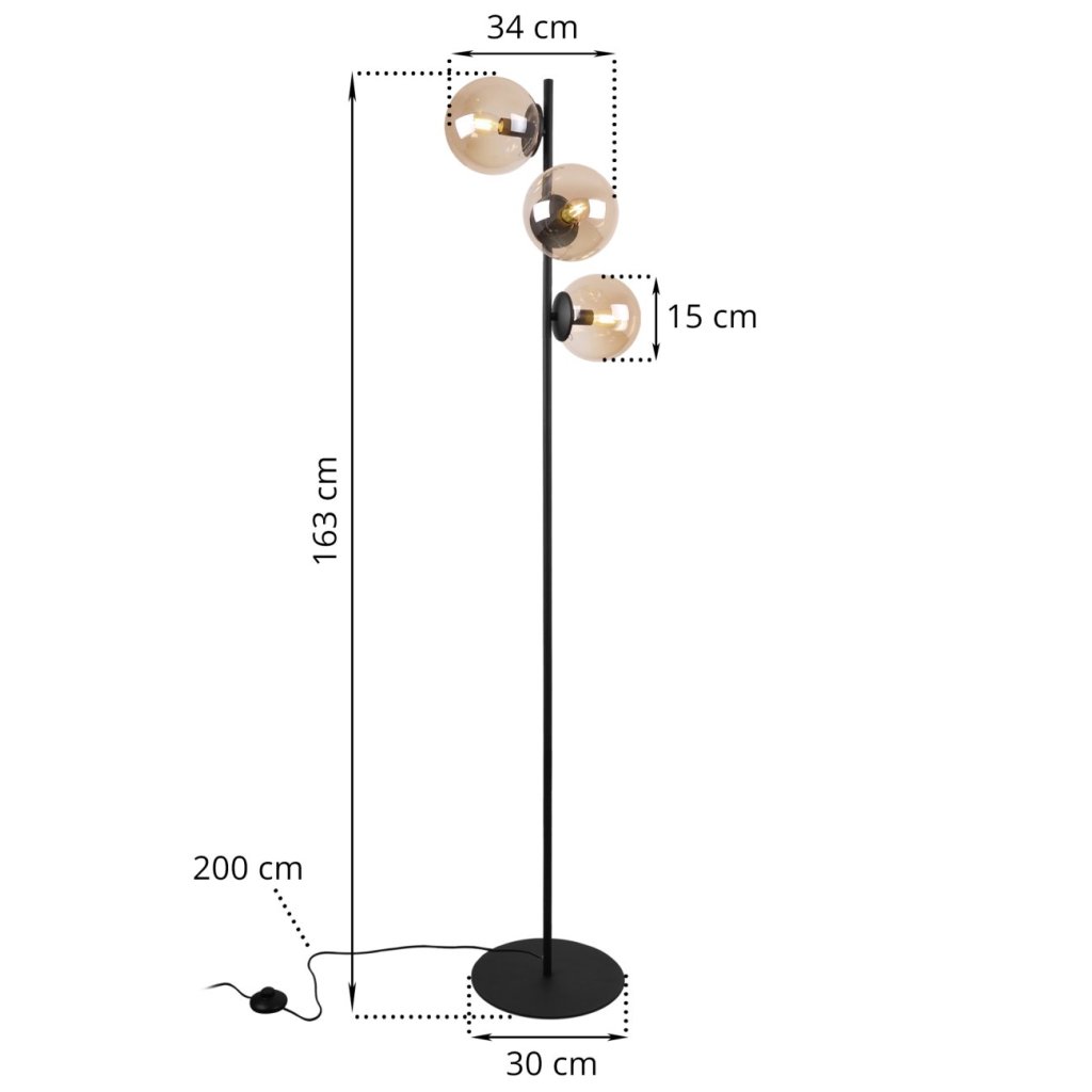 Stojací lampa Paris, 3x medové skleněné stínítko, B