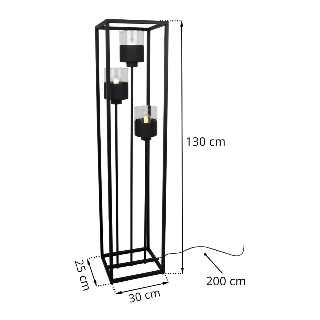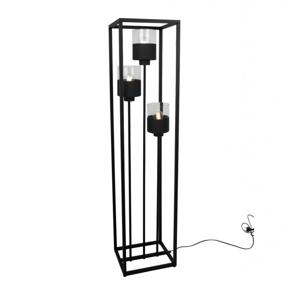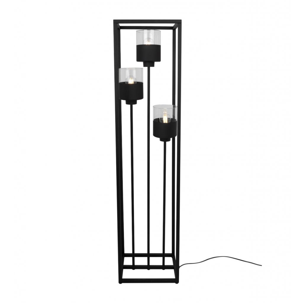 Stojací lampa Roma Cage, 3x černé/transparetní skleněné stínítko v kovovém rámu