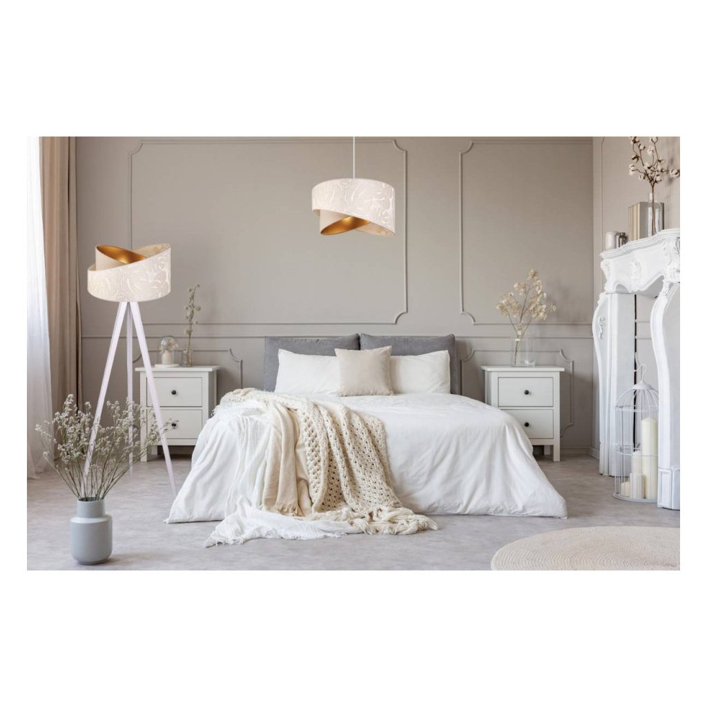 Stojací lampa Werona 7, 1x krémové textilní stínítko se vzorem, g, wb