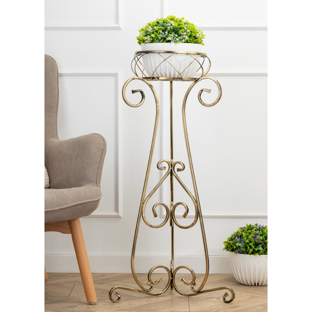 Kovový stojan na květináč, který zaujme svým designem a praktičností. Jeho moderní styl z něj činí krásnou dekoraci na každou terasu, balkon, také je ideální do každého interiéru v domácnosti. Design je přizpůsoben tak, aby.Stojan se pyšní odolností a je vyroben z pevného kovu, nepraská, nedeformuje se ani nevybledne vlivem povětrnostních podmínek.