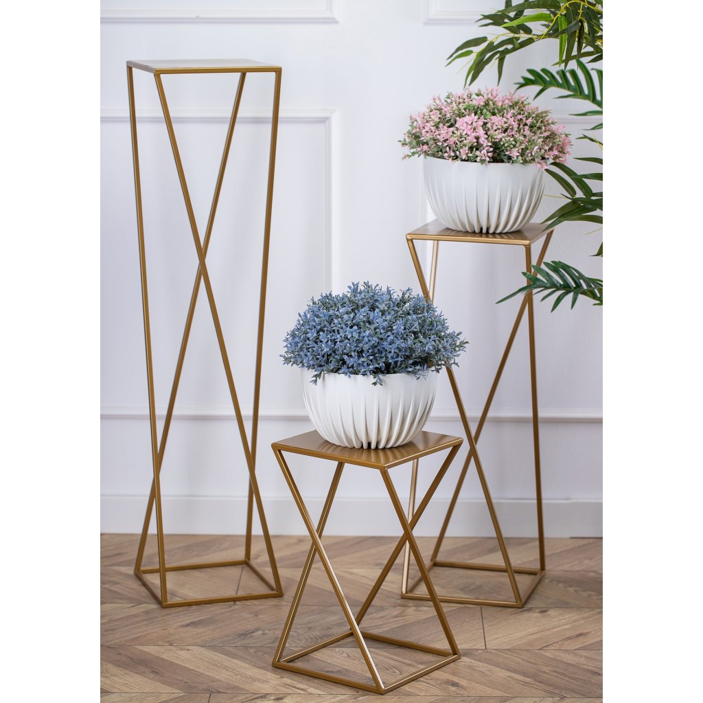 Kovový stojan na květináč, který zaujme svým designem a praktičností. Jeho moderní styl z něj činí krásnou dekoraci na každou terasu, balkon, také je ideální do každého interiéru v domácnosti. Design je přizpůsoben tak, aby ladil s každým typem květináče.Stojan se pyšní odolností a je vyroben z pevného kovu,< /strong> nepraská, nedeformuje se ani nevybledne vlivem povětrnostních podmínek.