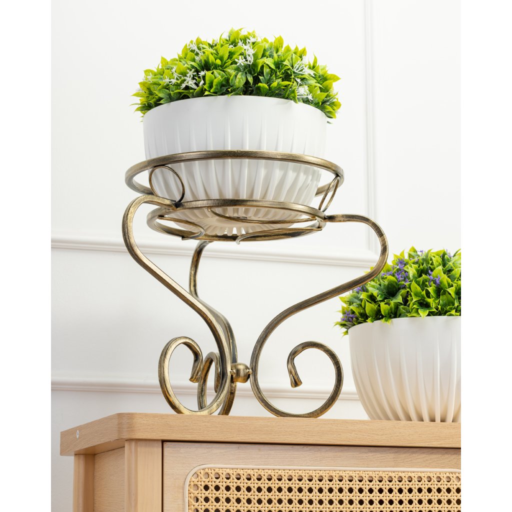 Kovový stojan na květináč, který zaujme svým designem a praktičností. Jeho moderní styl z něj činí krásnou dekoraci na každou terasu, balkon, také je ideální do každého interiéru v domácnosti. Design je přizpůsoben tak, aby.Stojan se pyšní odolností a je vyroben z pevného kovu, nepraská, nedeformuje se ani nevybledne vlivem povětrnostních podmínek.