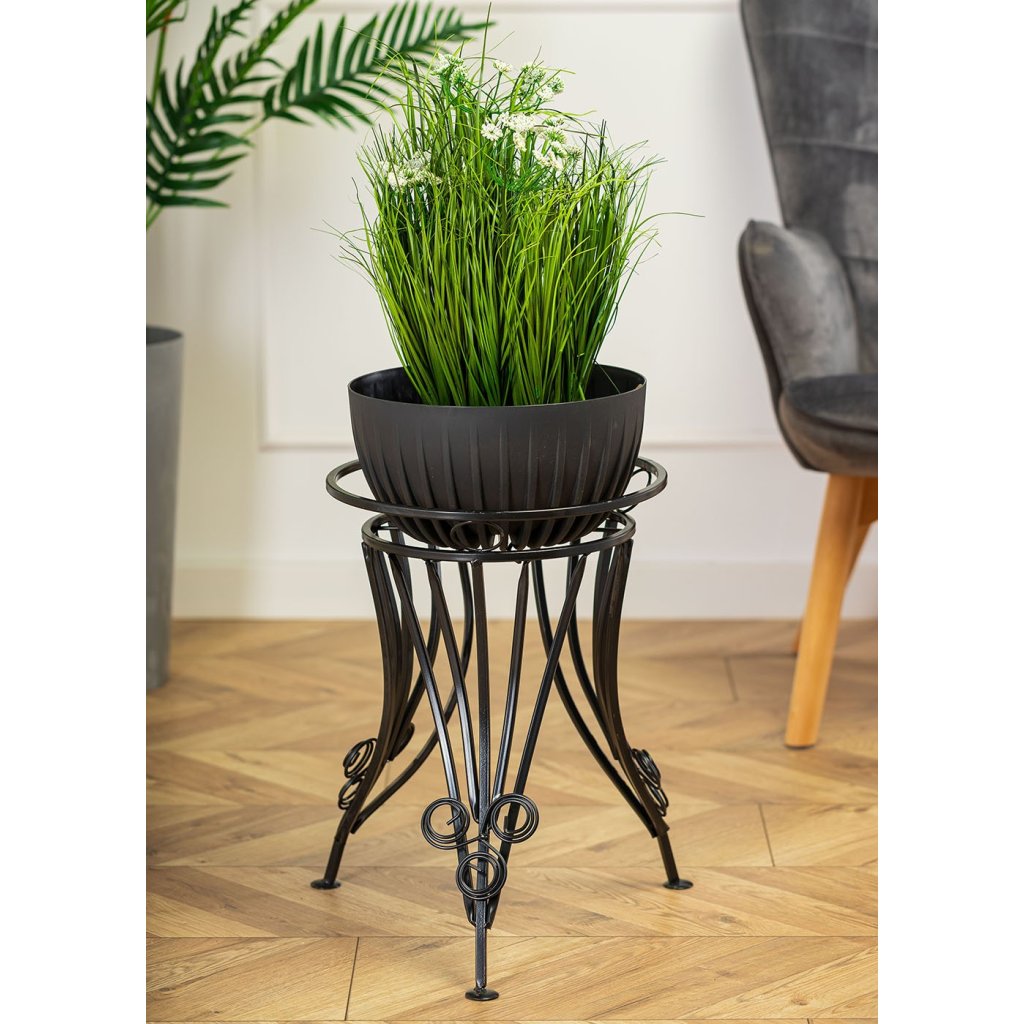 Kovový stojan na květináč, který zaujme svým designem a praktičností. Jeho moderní styl z něj činí krásnou dekoraci na každou terasu, balkon, také je ideální do každého interiéru v domácnosti. Design je přizpůsoben tak, aby ladil s každým typem květináče.Stojan se pyšní odolností a je vyroben z pevného kovu,< /strong> nepraská, nedeformuje se ani nevybledne vlivem povětrnostních podmínek.