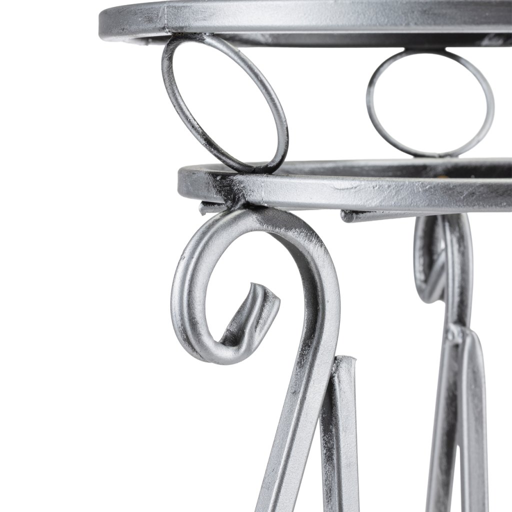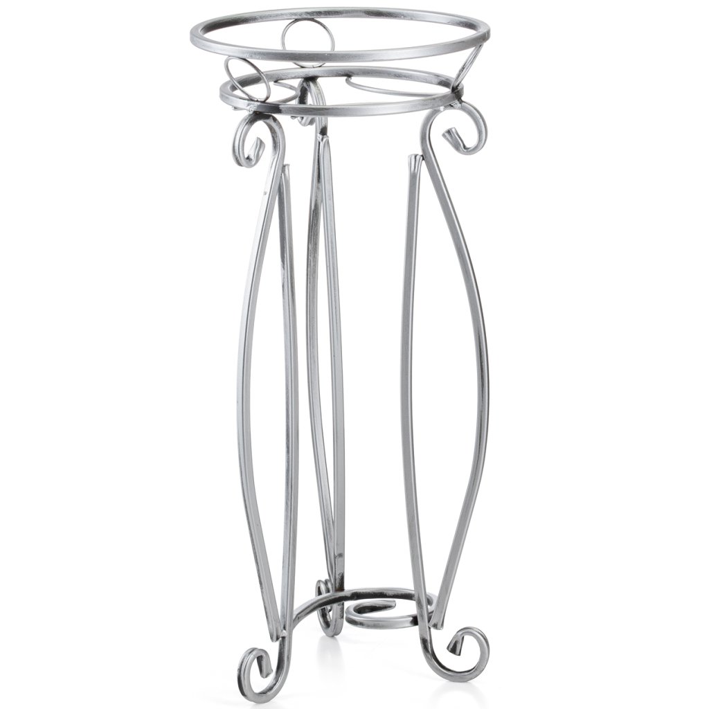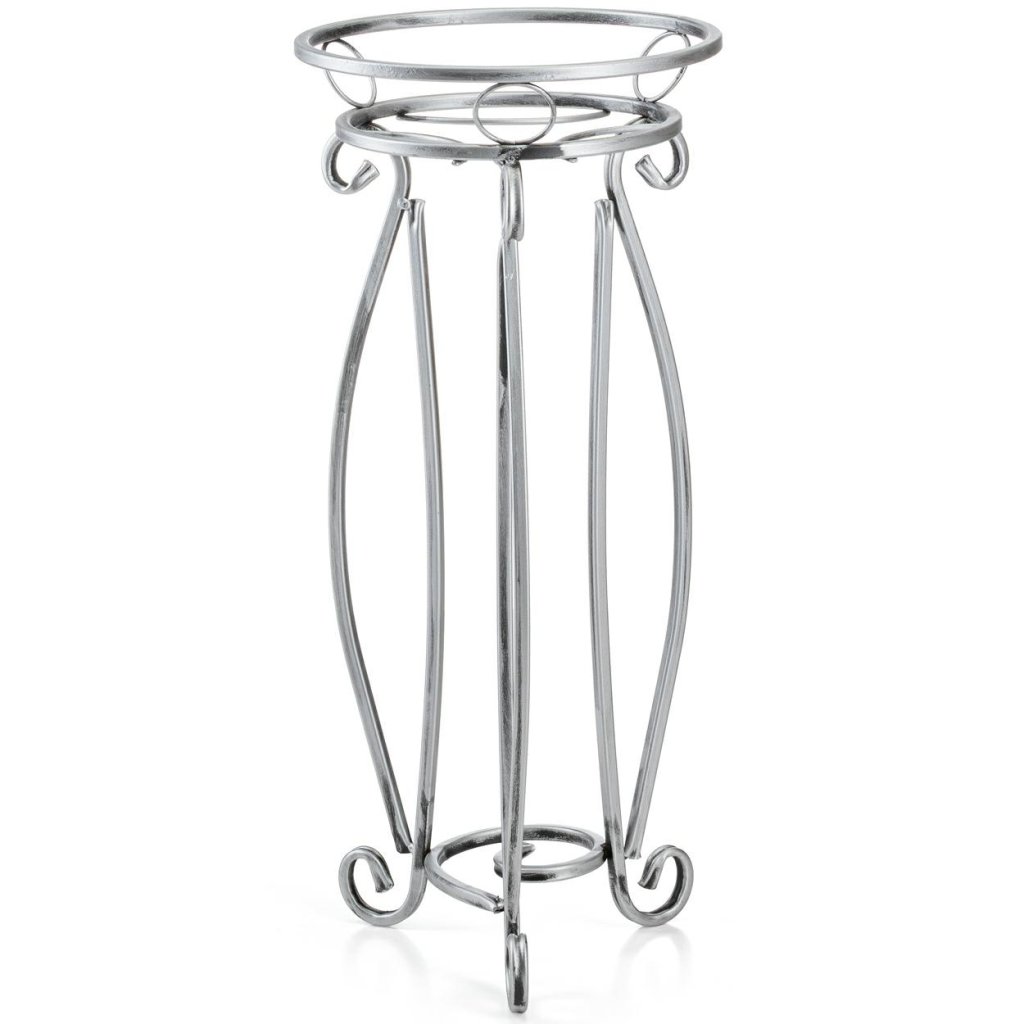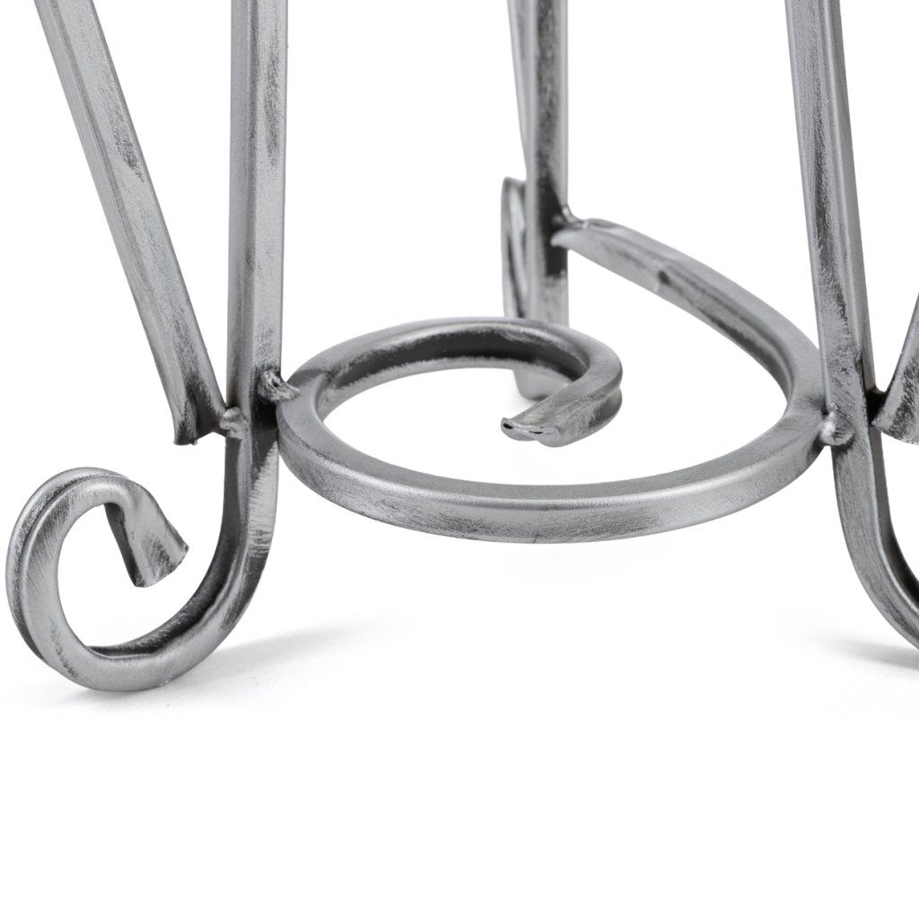 Stříbrná patina v jemně přebroušeném provedení podtrhuje umělecký vzhled kovové konstrukce, přičemž minimalistický design stojanu harmonicky doplňuje jak moderní, tak rustikální prostory. Výška podstavce pod květináč je přibližně 7 cm, což umožňuje stabilní uložení rostliny.