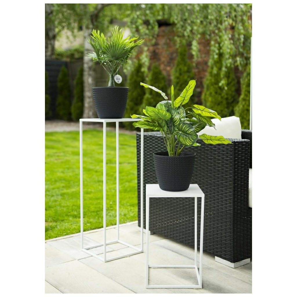 Kovový stojan na květináč, který zaujme svým designem a praktičností. Jeho moderní styl z něj činí krásnou dekoraci na každou terasu, balkon, také je ideální do každého interiéru v domácnosti. Design je přizpůsoben tak, aby ladil s každým typem květináče.Stojan se pyšní odolností a je vyroben z pevného kovu,< /strong> nepraská, nedeformuje se ani nevybledne vlivem povětrnostních podmínek.