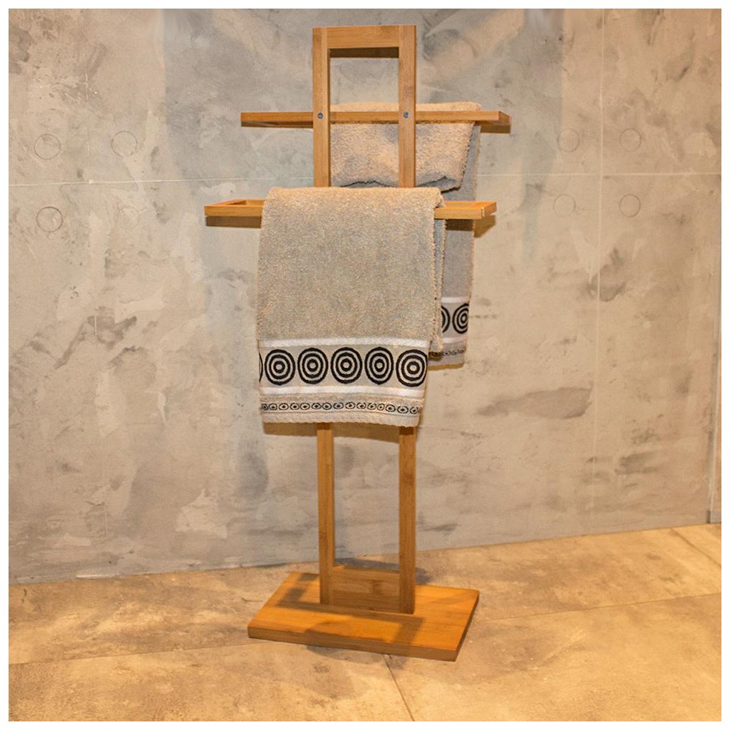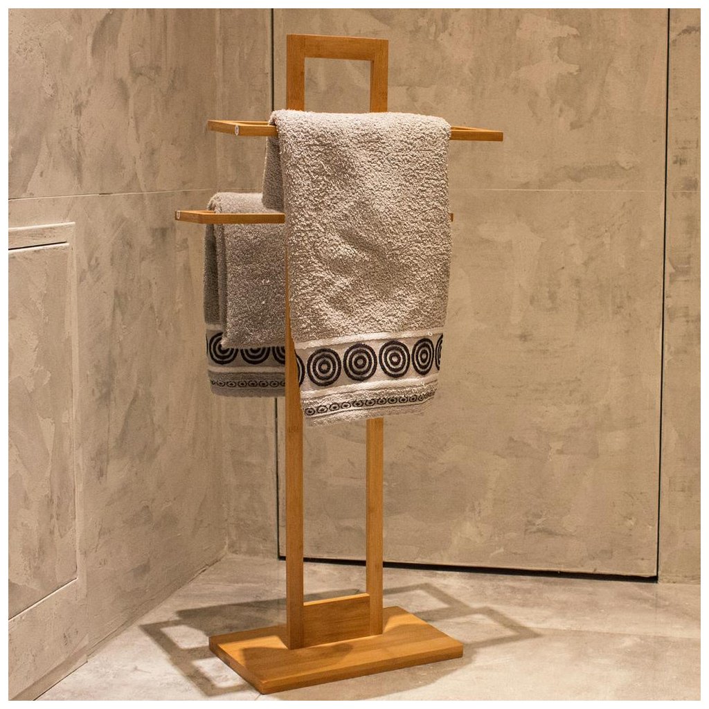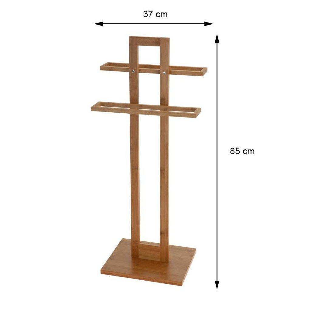 Stojan na ručníky značky Bathroom Solutions, který poskytuje pohodlné skladování ručníků a zároveň zajišťuje estetický vzhled prostoru. Vyrobeno z odolného materiálu, který je odolný vůči vlhkosti, díky čemuž je ideální pro použití v koupelně. Pevná konstrukce zaručuje vysokou nosnost, takže na stojan můžete klidně zavěsit ručníky různých velikostí. Instalace stojanu je mimořádně jednoduchá a nevyžaduje žádné speciální nářadí. Univerzální design stojanu usnadňuje sladění s koupelnovým dekorem. Není to jen praktický předmět, ale také dekorativní prvek, který doplňuje dekoraci koupelny. Díky ní jsou ručníky vždy na dosah a koupelna působí úhledněji a uspořádaněji.Bambus je odolný vůči vlhkosti, takže určitě vydrží dlouhá léta. Držáky na ručníky jsou umístěny dále od sebe, což přispívá k dobré cirkulaci vzduchu a tím k rychlému schnutí.