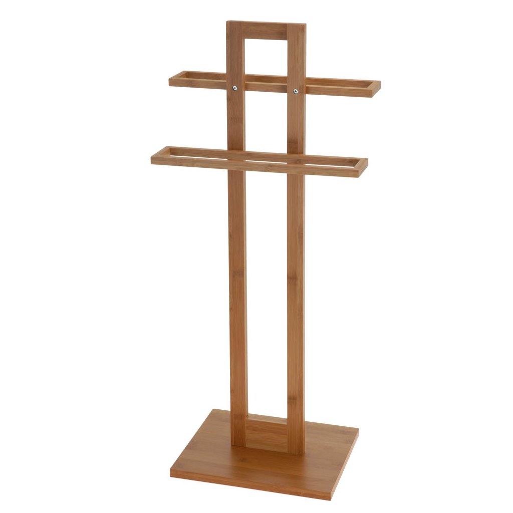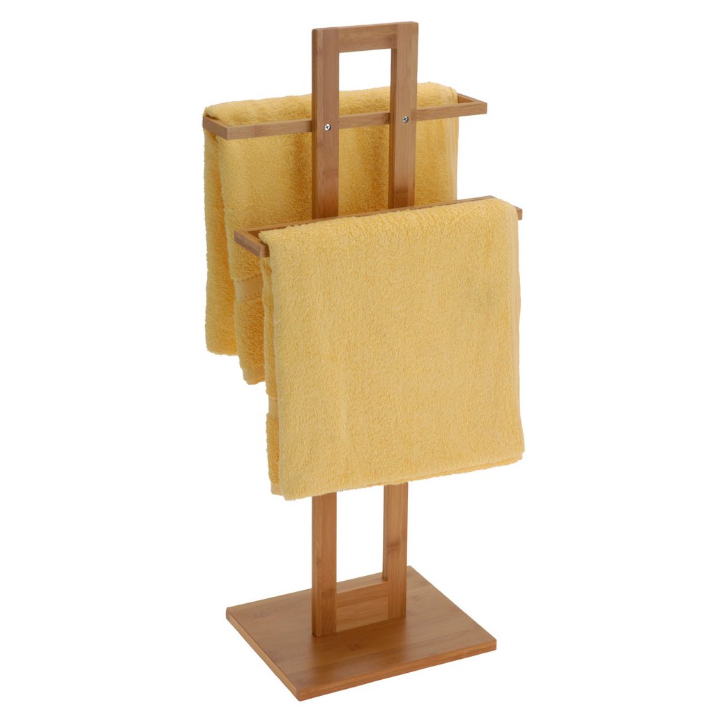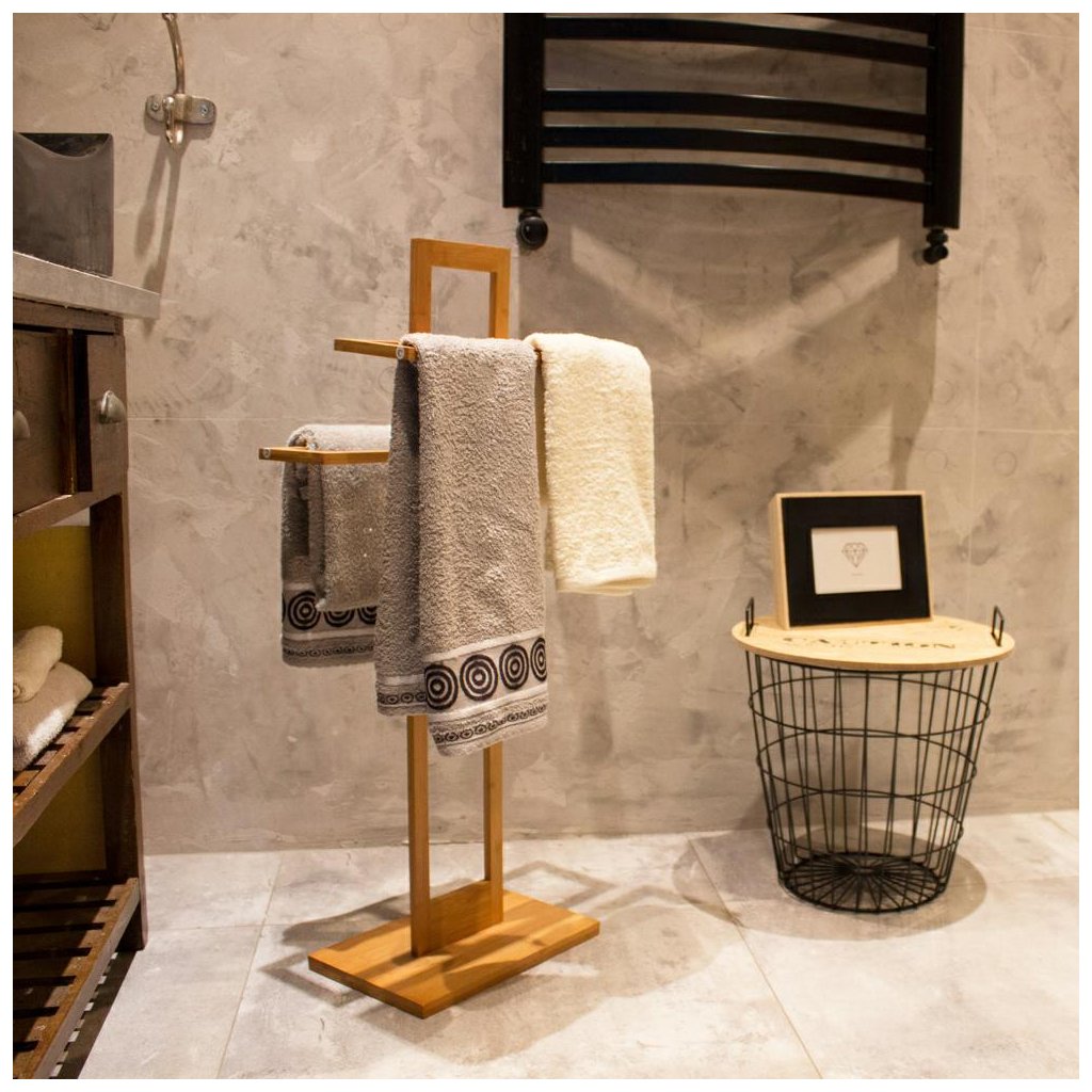 Stojan na ručníky značky Bathroom Solutions, který poskytuje pohodlné skladování ručníků a zároveň zajišťuje estetický vzhled prostoru. Vyrobeno z odolného materiálu, který je odolný vůči vlhkosti, díky čemuž je ideální pro použití v koupelně. Pevná konstrukce zaručuje vysokou nosnost, takže na stojan můžete klidně zavěsit ručníky různých velikostí. Instalace stojanu je mimořádně jednoduchá a nevyžaduje žádné speciální nářadí. Univerzální design stojanu usnadňuje sladění s koupelnovým dekorem. Není to jen praktický předmět, ale také dekorativní prvek, který doplňuje dekoraci koupelny. Díky ní jsou ručníky vždy na dosah a koupelna působí úhledněji a uspořádaněji.Bambus je odolný vůči vlhkosti, takže určitě vydrží dlouhá léta. Držáky na ručníky jsou umístěny dále od sebe, což přispívá k dobré cirkulaci vzduchu a tím k rychlému schnutí.
