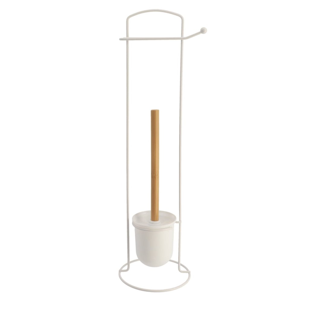 Stojan na toaletní papír a WC kartáč White Bamboo, bílý/s dřevěnými prvky, O
