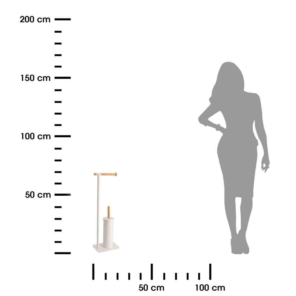 Stojan na toaletní papír a WC kartáč White Bamboo, bílý/s dřevěnými prvky